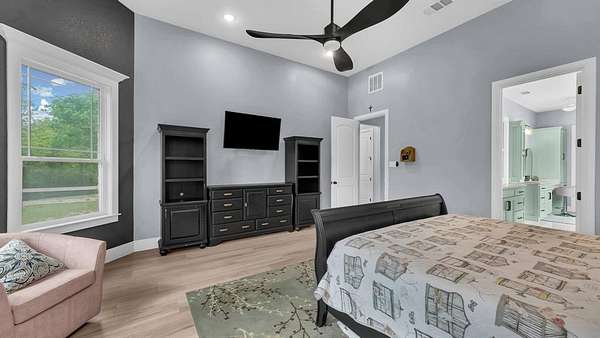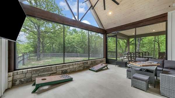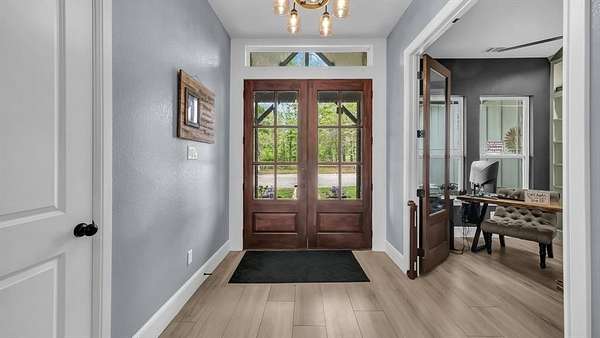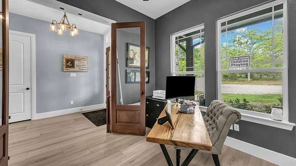 Welcome to this magnificent 12.946-acre estate in the exclusive Paradise Meadows Gated Community of Poolville, Texas. Offering the perfect blend of luxury and rural tranquility, this property benefits from an Ag Exemption on 11.946 acres for significantly lower taxes. Completed in March 2023 with exceptional craftsmanship, the home features sleek tile floors, gorgeous quartz countertops, double ovens, custom cabinetry, and a large kitchen island designed for gathering. The open-concept layout is bathed in natural light, flowing seamlessly to a spacious screened-in porch for year-round outdoor living. High-performance efficiency is built into the home’s core, featuring a multi-stage AC, high-efficiency gas furnace, encapsulated spray foam insulation, a 24Kw Generac backup generator, whole-home water softener, and a 340-foot deep well producing 30 GPM. The elegant primary suite provides a serene retreat with a freestanding tub, walk-in shower, double vanities, and large windows framing scenic wooded views. Outside, discover 7.8 acres of wooded land perfect for hiking and trail running, along with 4.1 acres of lush green pasture where free-range deer visit daily. The property also features a 1,200 sqft shop equipped with two Daikin mini-splits for climate control. Above the shop is a 952 sqft efficiency apartment complete with a full kitchen, appliances, spacious bedroom, full bath, large living area, and dedicated AC—an ideal setup for guests or a home office. Situated just 30 minutes from Weatherford and 55 minutes from Fort Worth, this unique property offers the ultimate Texas lifestyle. Schedule your private tour today!
