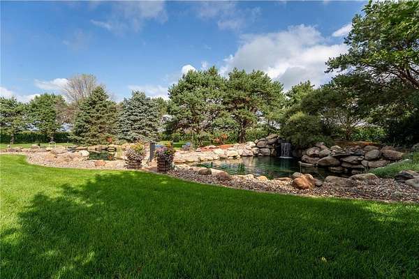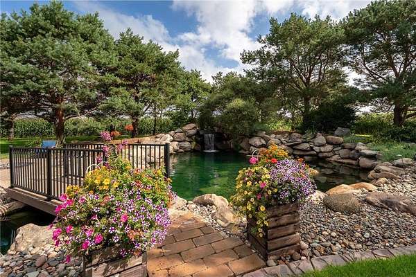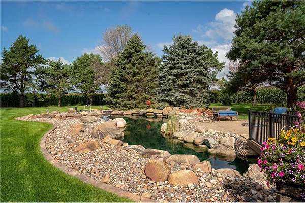 Step outside and discover your private resort! The property's crown jewel is it's award-winning pond, honored in the "Parade of Ponds" for its breathtaking beauty! Lush landscaping, curated with professional curbs and edging throughout the property, and in ground irrigation system, enhances the serene setting. An expansive stamped concrete patio with a pergola creates an inviting outdoor living space, complete with a fully equipped outdoor kitchen for unforgettable gatherings under the stars! For hobbyists or collectors, a 1200 sq ft detached heated garage provides ample room for vehicles, projects, and storage in addition to the attached garage! Plus SO much more, this is a must see!! Hurry, it won't last long!