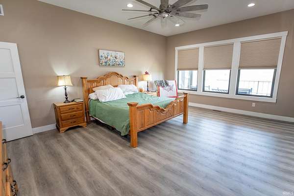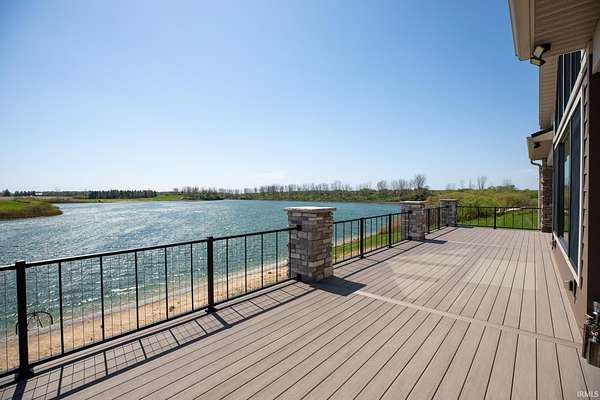 Award-winning luxury meets breathtaking waterfront views in this stunning 4-bedroom, 4.5-bath home, known as “The Golden Pond” by Renewal Homes. Recognized as the 2023 Builder’s Association of North Central Indiana Homes on Parade People’s Choice Award winner, this custom-built property showcases exceptional craftsmanship and thoughtful design throughout. Set along a private, stocked lake and 43 acres, this property offers a rare opportunity for peaceful waterfront living. Enjoy the private pier, gazebo, and charming shed, all designed for relaxation and entertaining. Expansive outdoor spaces include a massive deck overlooking the water and beautifully maintained garden areas. Inside, the open-concept layout features a chef’s kitchen with stone surfaces, bar seating, walk-in pantry, and seamless flow into the dining and living room with a cozy fireplace. The luxurious primary suite includes a spa-like bath with a soaking tub, stone shower, and an impressive walk-in closet. Three-car attached garage has epoxy floors and leads the way to a finished loft with a bedroom, bathroom, and built-in office area. The walk-out basement offers a large rec room with polished concrete floors, space for a future kitchenette, craft room, second laundry area, and access to a private hot tub retreat. Driveway and sidewalks are prepped for heating installation. Home is wired for a whole house generator.