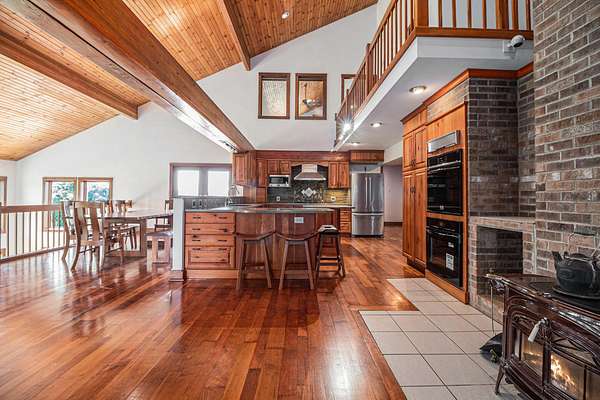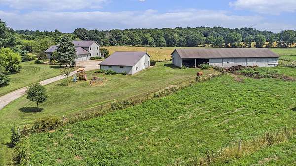 Working Country Estate & Farm on 28 Acres - Just 10 Minutes from Ann Arbor. Experience the best of country living and agricultural opportunity with this rare 28-acre estate featuring a 5,200 SF custom home, fully equipped dairy barn, and multiple outbuildings--all set in one of the most scenic and private settings near Ann Arbor. This property offers tremendous versatility and potential--ideal as a working dairy or equestrian operation, hobby farm, or sustainable homestead. The land includes rolling open fields, fenced pastures, pollinator-friendly plantings, and fruit trees, perfect for crops, livestock, or agritourism ventures. Farm Features: Animal Barn: 10 free-stall stanchions, automatic watering bowls, and feed trough--ready for dairy or livestock use. Heated Workshop: Concrete floors, walk-in cooler, and space for repairs, processing, or farm-to-table production. Large Pole Barn: Excellent storage for equipment, hay, or vehicles. Fenced acreage and pasture potential for horses, cattle, goats, or other livestock. The custom-built home complements the land beautifully, oriented for sunrise and sunset views on the wrap around deck. Inside, enjoy an open-concept floor plan with cathedral ceilings, American Cherry hardwood floors, and a cozy wood-burning stove. A Cherry kitchen opens to a dining area, family room and flex/craft space. The main-level primary suite includes its own den and full bath; The upper level includes a primary suite with two walk-in closets, a cedar closet, and a full bath with a shower and Jacuzzi tub, plus an additional bedroom with an ensuite bath. The walkout lower level features a solar atrium, home theater, full bath, and built-in shelving as well as plenty of storage. A unique blend of functioning farm and refined home, this property offers a rare opportunity to live, work, and grow in harmony with the land just minutes from downtown Ann Arbor.