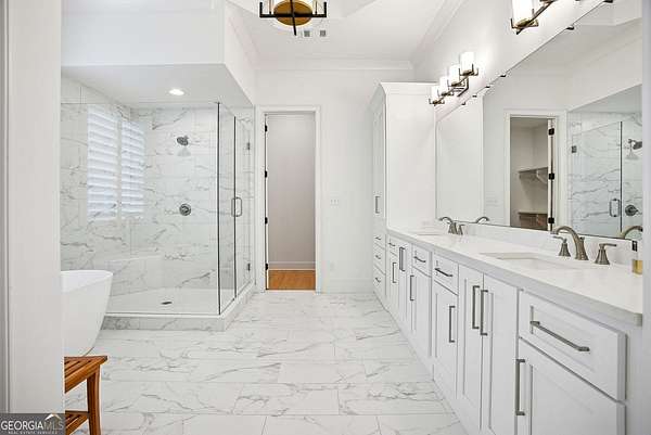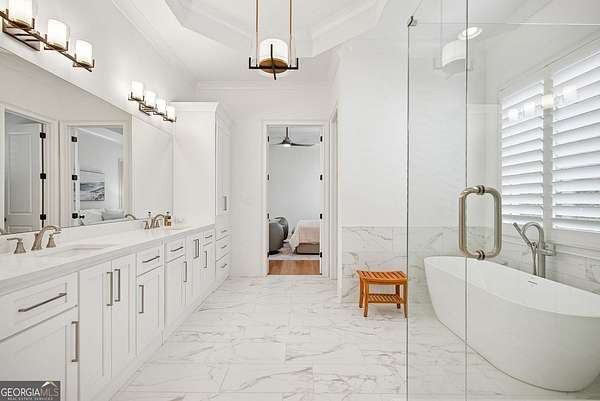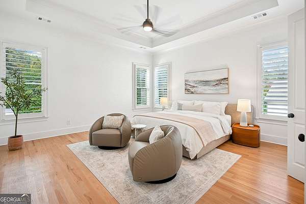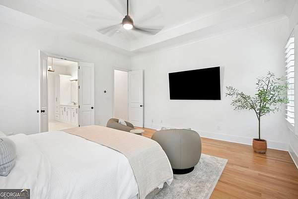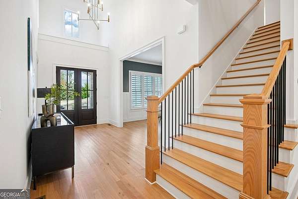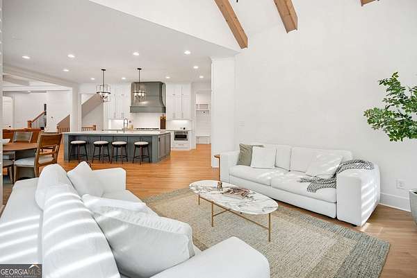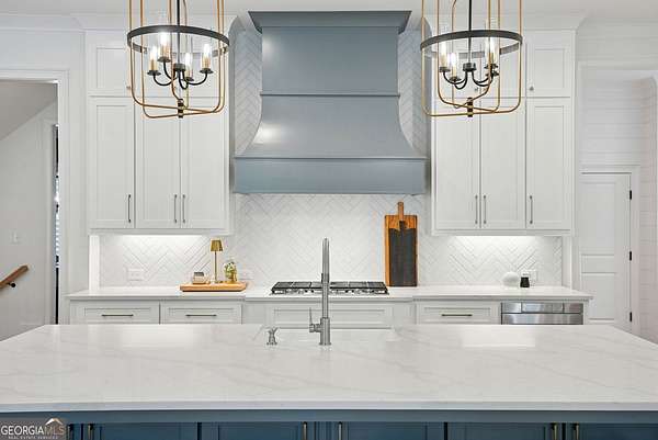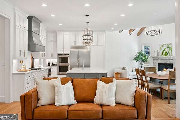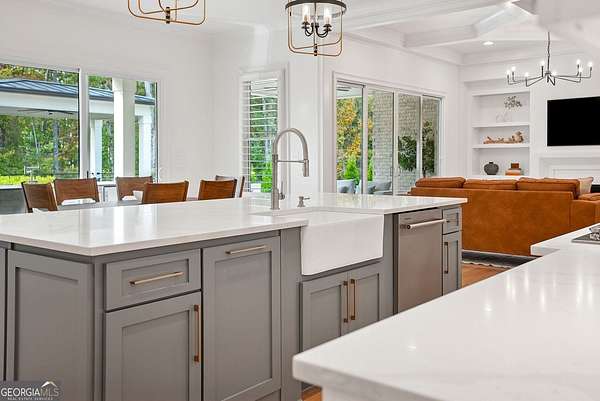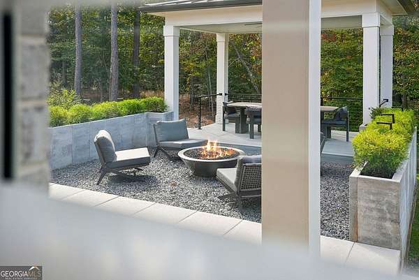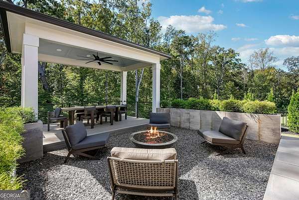 Built in 2022 and set on 2.54 private acres in the picturesque, no-HOA Breamridge neighborhood, this Modern French country-style estate offers the best of Milton living with 5,651 finished square feet, five bedrooms, five and a half bathrooms, and room to grow. From its beautiful curb appeal and porte-cochere connecting a detached fourth garage to the main residence, every detail reflects timeless craftsmanship and thoughtful design. Inside, natural light fills the soaring two-story foyer and open layout, where warm white oak hardwoods and elegant finishes create a seamless transition between gathering spaces. The main level features a formal dining room, a private home office, and a luxurious primary suite on the main with a spa-inspired bath, dual vanities, freestanding soaking tub, and expansive walk-in closet. The heart of the home is the designer kitchen. Equipped with quartz counters, professional appliance package, double ovens, a large walk-in pantry, and an oversized island, it seamlessly connects to the vaulted fireside keeping room and the spacious formal living room with coffered ceilings and a second fireplace. Upstairs, four spacious secondary bedrooms each feature private ensuite baths and large walk-in closets with custom wood shelving. The unfinished walkout basement/terrace level provides an additional 2,900 square feet ready for future expansion. Perfect for adding a media room, gym, or multi-generational living suite. The outdoor living spaces are equally impressive and perfect for entertaining, featuring a covered lanai and an exceptional outdoor kitchen with built-in grill, refrigerator, sink, and pizza oven. Gather around the modern firepit or under the pavilion and enjoy the serenity of your wooded 2-acre backyard, with plenty of space for a future pool. A true entertainer's dream, this home combines elegant design with everyday functionality. Conveniently located LESS than one mile from Publix, local dining favorites such as 7 Acre BarnGrill, banks, and everyday conveniences. Located in the sought-after Milton High School district.