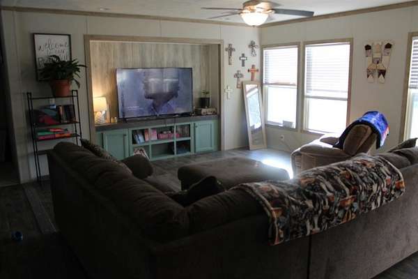 This property offers peaceful and quiet country living, conveniently located only 5 miles from Groesbeck and about a 15 minute drive to Walmart. The home features an amazing kitchen with abundant natural light and views of the outdoors. It boasts a farmhouse sink, ample counter space, numerous cabinets and drawers, and a large sit at island, perfect for any cook. The open floor plan includes a spacious living area with windows and views of the Property. Separate office off the living area, complete with barn doors for privacy. The large pantry utility room combo provides space for a freezer, washer, dryer, and plenty of shelves for storage. A half bath is conveniently located just off the living area and kitchen. The primary bedroom is situated on one end of the home for privacy. Primary bath features double sinks, a separate shower, an oversized tub, and two walk in closets. There are two additional bedrooms, each with walk in closets and a Jack and Jill bath. Outside, a 1,680 sq ft carport behind the house offers ample parking and shaded outdoor cooking and entertaining space. The property includes some woods and an abundance of wildlife.