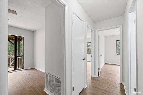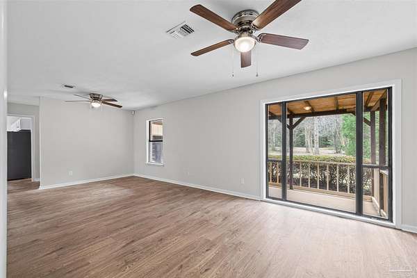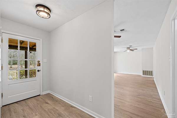 Absolute privacy on over 2.7 acres surrounded by woods. This 3 Bedroom 2 Bath has had substantial renovations this year in preparation for listing. Pine Top Ln in Cantonment is Just a half hour drive to Beautiful Beaches, and less to Malls, the Airport, Hospitals and Shopping. New premium LVP flooring laid throughout the home with NO CARPET! The kitchen has all new appliances, quartz counters, lighting and fixtures. The living room and kitchen both have large picture windows. The windows in the finished space have all been replaced with double pane insulated windows for added energy efficiency and temperature control. The spacious bedrooms are big enough for queen or king furniture. All new ceiling fans throughout the home as well. There is an oversized 2 car garage with independent bay doors and an additional store/shop room just off the entrance to the home for tons of storage! There is a covered and enclosed back porch as well as a partial fenced backyard to keep dogs contained to a portion of the property. Recently updated roof. Don't miss your opportunity to have seclusion and updates for a great price! Call today for a showing!