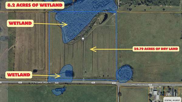 Opportunity to acquire over 37 Acres of Agricultural Land in Osceola County, Florida, with Subdivision potential. Located along Paved S Canoe Creek Road, this expansive parcel offers a strong combination of Open pasture, natural drainage, and existing ponds, making it suitable for agricultural operations, rural residential development, or long-term land investment. The property is predominantly Cleared, Fenced and usable, with natural tree lines providing privacy and separation. Its size, configuration, and agricultural zoning permit a wide range of potential uses, including farming, cattle or equestrian operations, estate homes, or a possible subdivision (subject to county approvals). With No HOA and no known deed restrictions, buyers may use the land in accordance with county regulations. The property is conveniently located near major roadways, including US-192, Florida's Turnpike, and SR-60, providing access to Kissimmee, St. Cloud, and the greater Orlando area. Buyers will appreciate the balance of agricultural land use with reasonable access to Central Florida employment areas, shopping, dining, medical facilities, and Orlando International Airport. Osceola County continues to see steady demand for land, while large-acreage tracts like this are increasingly scarce. Qualified buyers may purchase this property with as little as 20% Down Payment, making it an attractive opportunity.