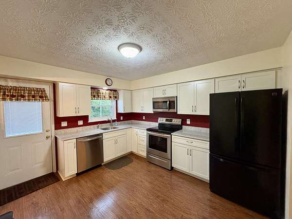 - Dishwasher, Electric Range, Microwave, Refrigerator, Stainless Steel Appliance(s)
