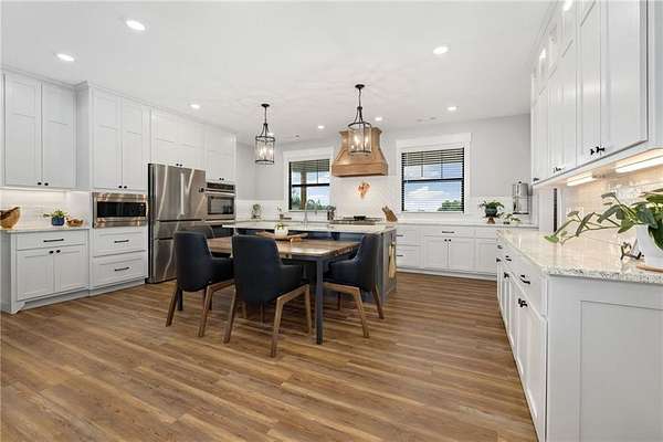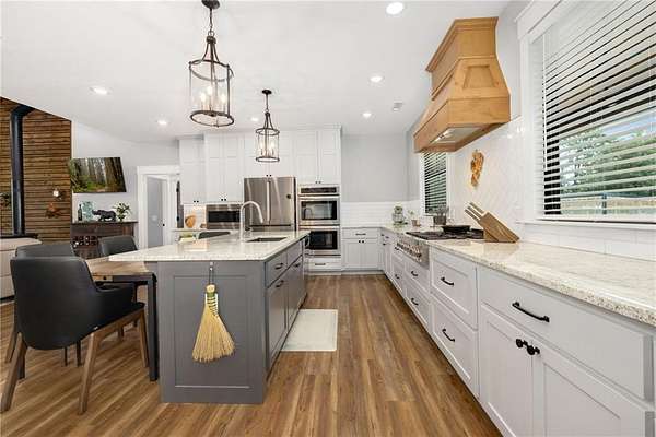 - Attic Storage, Blinds, Built-Ins, Ceiling Fans, Drapes, Eat-in-Kitchen, Granite Counters, Led Lighting, Pantry, Programmable Thermostat, Smoke Detector, Walk-In Closets, Woodstove