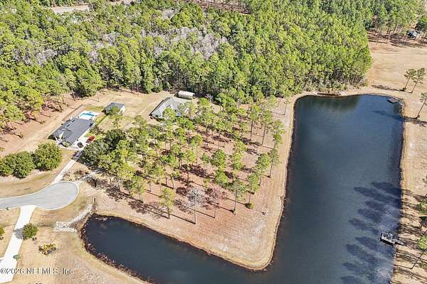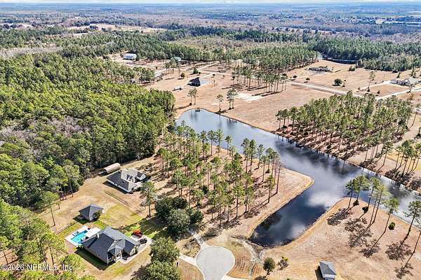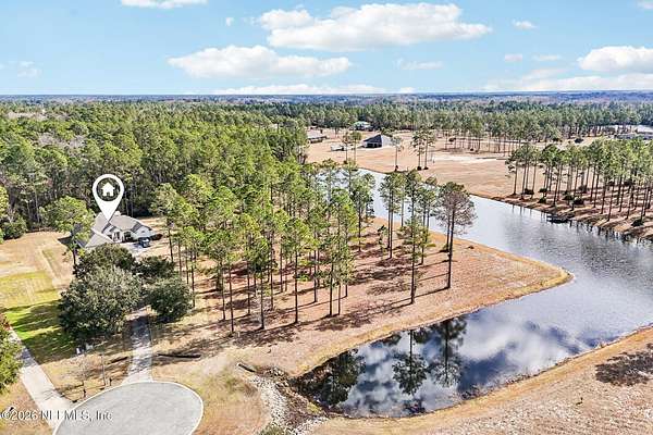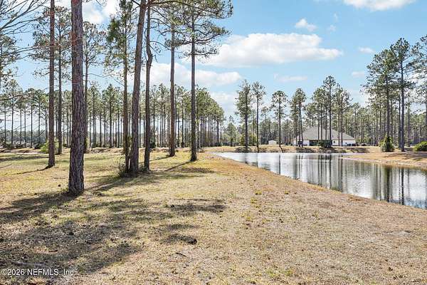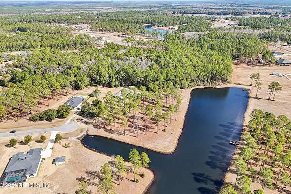Build your dream home on this exceptional 3.46-acre waterfront cul-de-sac lot in the gated Jacksonville Ranch Club Unit One. Located at the end of a quiet street, this oversized homesite with a small .46 acre conservation area offers outstanding privacy, peaceful surroundings, and beautiful water, and wooded views. With generous frontage and a scenic natural backdrop, the property is ideal for a custom estate with room for outdoor living. Enjoy the tranquility of country-style living while remaining conveniently close to I-295, River City Marketplace, Jacksonville International Airport, and downtown Jacksonville. Community amenities include a playground and RV/boat storage. A rare opportunity to own a waterfront lot on a cul-de-sac in one of North Jacksonville's most sought-after acreage communities.
