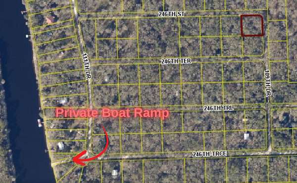 PRIVATE BOAT RAMP.Nestled in the heart of Suwannee County, this recreational vacant corner lot offers the ideal blend of natural beauty, convenience, and potential.Spanning approximately half an acre, this wooded gem boasts a serene atmosphere, with much of the underbrush already cleared. Located in a quiet neighborhood mere moments from the majestic Suwannee River, you'll have the luxury of voluntary HOA dues--just $100 per year--granting you exclusive access to a private boat ramp, providing easy access to the Suwannee River and nearby Little River and Troy Springs - perfect for swimming, kayaking, and boating.Perfect for river enthusiasts, this amenity ensures your adventures on the water are just a stone's throw away. Little River Springs is just a short walk away, offering crystal-clear waters and beautiful natural surroundingsDIRECTIONS: From Live Oak; South on Hwy 129; Right onto CO Rd 248; Right onto 246th Trace; Then take second right on 109th Drive; Property on your left.FOR MORE INFORMATION: To schedule a viewing, call Samantha Prueter at 386-623-1217 and don't miss the chance to own this recreational property! Samantha, a highly awarded real estate broker and owner of United Country Real Estate | Lifestyle Properties in Hamilton County, Florida, is a fifth-generation Floridian with deep ties to her community.Having grown up in Naples before moving to Hamilton County, she has served in various leadership roles, including as Mayor of Jennings, Florida (2020-2022), and has been actively involved with organizations like the Hamilton County Chamber of Commerce and the Lake City Board of Realtors.Beyond real estate, she is passionate about supporting local businesses and engaging in community events such as festivals and parades. To learn more about her work or connect with her, visit her website or check out her Zillow profile.