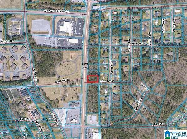 Est $494/mo.45 Acre +/- corner parcel on Hwy 231 and 10th avenue South. Wooded parcel. High growth area. 20,582 Vehicles per day on Hwy 231. 1/2 mile south of I-20 Exit. Currently zoned residential. Adjacent .45+/- acre parcel to north also for sale separately which could be combined for .9 acre +/- total. Please call Austin Blair 205-478-7805 or Dana Ellison 205 369-1413 for more information.