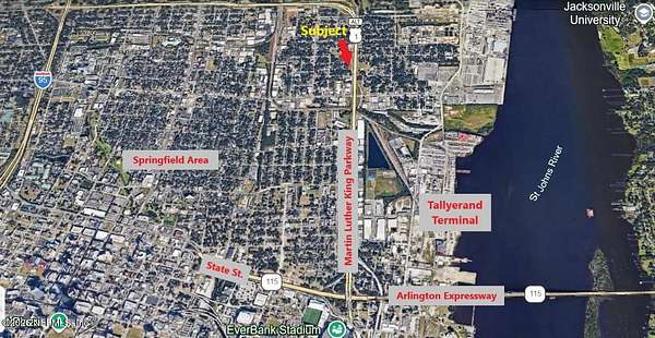 From Downtown Jacksonville on to North Martin Luther King Parkway to 8th Street, then go back under the overpass to Franklin St., take a right, then go to 10th Street and Haines Street. Property on the left.
