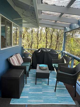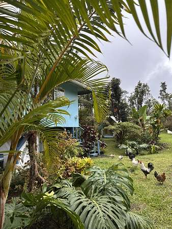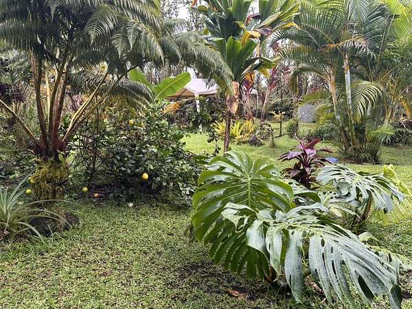 Live the self sufficient off grid dream. Studio cabin sits up in the trees with covered storage underneath. 16x16 cabin with 16x 20 covered lanai. Home is completely self sufficient with a 1180 watt solar array feeding a 16 battery storage bank. Water is from rain catchment. Property is in a quiet private location but only 30 minutes from shopping and dining in Hilo or 30 minutes to Volcano national park for hiking and lava viewing. Home includes all furnishings, including a large DC sundanzer chest freezer, eu2200 honda generator, and a farm truck! Great starter home with several nice level spots on the property to build your dream home. This property features an acre of native rainforest that has been carefully hand cleared to preserve hapu'u ferns and ohias. It features an avocado tree, meyer lemon, two types of bananas, purple sweet potatoes, lilikoi, plus lots of colorful exotics, ti plants, anthuriums, coleus, monsteria, palms, and bromeliads . The whole property is covered with a lush lawn. A chicken coop and fenced yard gives you fresh eggs. Rare well cared for land. Seller is motivated. Link to Video on youtube.