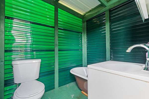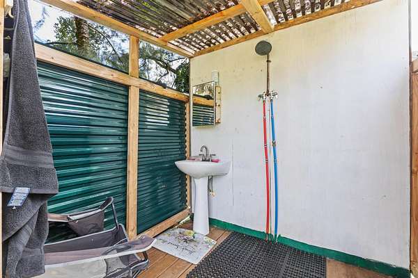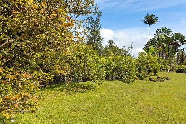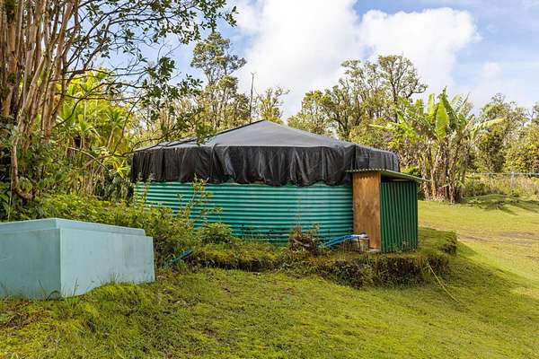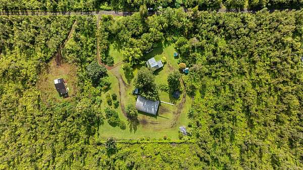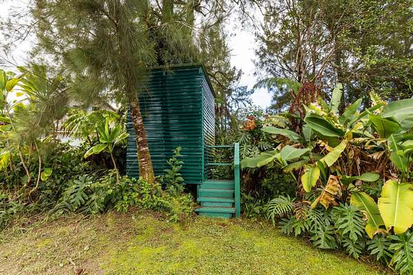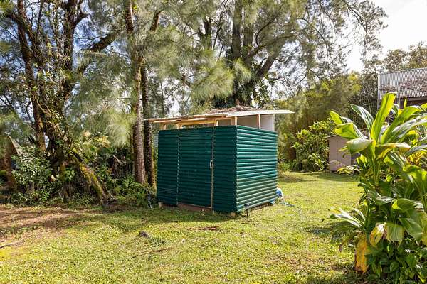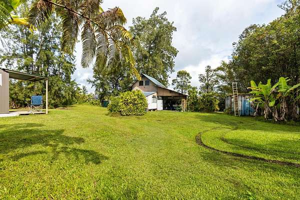 This East Hawai'i property offers privacy, space, and a self-sufficient layout on an approximately square-shaped 2-acre parcel formed by consolidating two one-acre lots. The land is fenced with 2 Gates and features mature fruit trees, tropical plantings, and natural greenery. A natural tree buffer provides separation from the road. Underground power is in place and connects to an approximately 60-foot Quonset workshop. High-speed fiber internet is available. The main cabin includes two approx 500-gallon poly water catchment tanks, a full bathroom, propane on-demand hot water with a backup heater, one bedroom on the main level, and a loft-style bedroom upstairs. Three additional cabin sheds and 3 outdoor common bathroom setups are located on the property, along with an additional larger water catchment tank. An outdoor kitchenette is positioned in the Quonset hut as a shared common area for the cabin sheds. The landscaping includes a wide variety of producing fruit trees and ornamentals, such as bananas, star apple, ice cream bean, allspice, mountain apple, avocados, jaboticaba, tangerines, Tahitian lime, Meyer lemon, oranges, guava, coffee, Surinam cherry, Brazilian cherry, palms, anthuriums, torch ginger, heliconia, and more. This property offers a private setting with multiple structures, mature plantings, and the convenience of available high-speed internet. 11-1860 Mahina St, Mountain View HI 96771 ~ MLS 725924