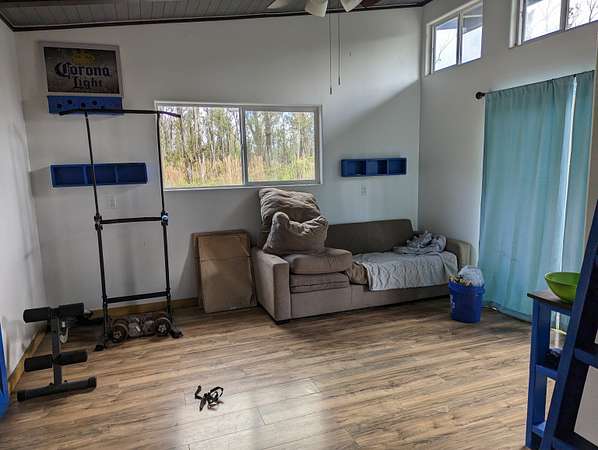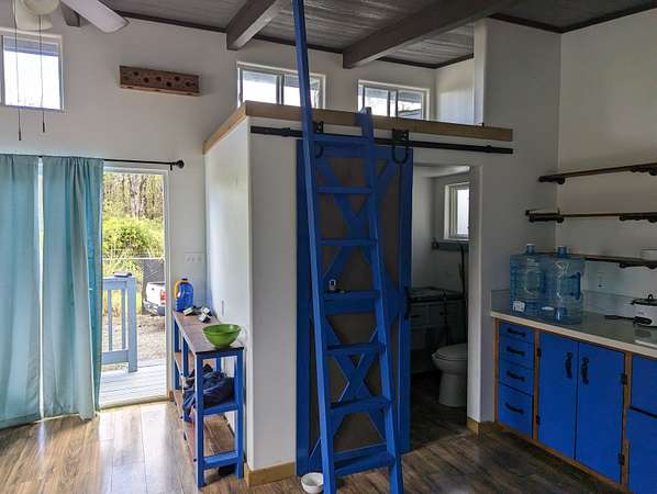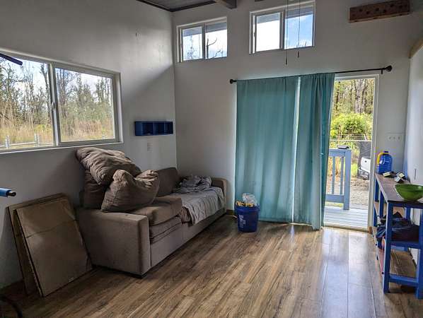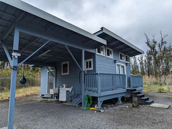 Est $820/moWell Built off grid tiny home with fenced in yard, great for kids and pets. Private driveway with 2 gates. 1 Bedroom, 1 bath, kitchen, living room and a loft for sleeping or storage. 2 car carport. There are (4) 100 watt solar panels with deep cycle batteries and a Xantrex inverter. Also a propane on demand hot water heater. and a water pump and catchment system. 3 acres of tropical paradise. Plenty of room for expansion. Very private location near the end of the road.