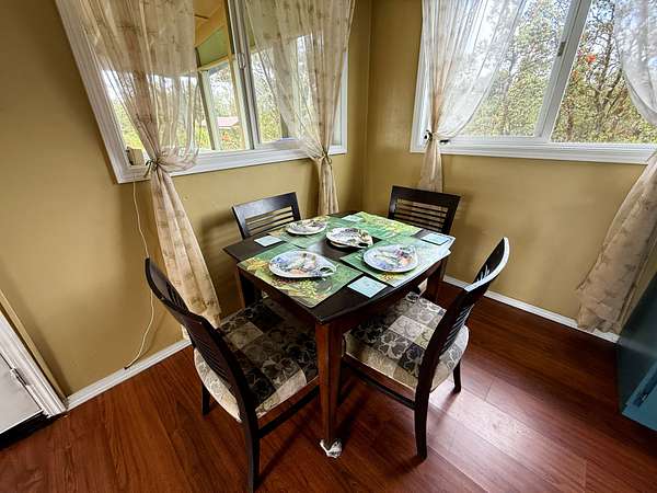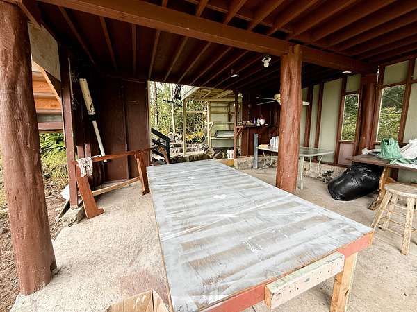 Newly Added Kitchen Nestled in peaceful Fern Forrest, your island getaway awaits priced well below the tax assessed value. Once a prosperous tilapia farm, now serves as a blank canvas for your hearts desires. With a 3 acre square shaped lot and 2 livable homes, you can't miss this opportunity. Located a short 15 minute drive to the Volcano National Park, you have quick access to shopping, restaurants, golf course and everything the growing Volcano community has to offer. The first 2 bed 2 1/2 bath home features open concept living with plenty of space for entertaining guests or designing your oasis. The bottom floor has a large living area and primary bedroom. Head upstairs for cool breezes and a cozy lanai area for enjoying everything Fern Forrest has to offer. The 2nd home called "The Castle" was originally built for the owners granddaughter also known as "The Princess." Complete with electricity, full plumbing, a kitchen, a bathroom and even has internet. This could serve as multigenerational living area, a guest house for friends or even a caretaker. The once tilapia pond (approximately 200'x310') is now a clear and level area for whatever your mind can think up. Another home? Land for growing produce? Another shrimp/tilapia farm? With the perfect weather for growing produce, you are truly only limited by your imagination. Buyers and buyers agent to perform all due diligence as this listing may contain inaccuracies.