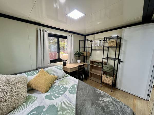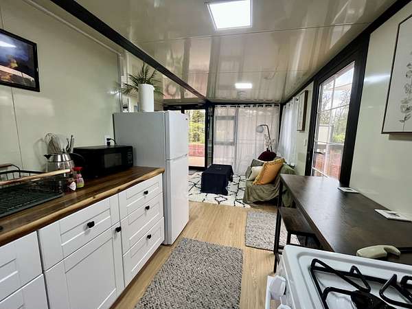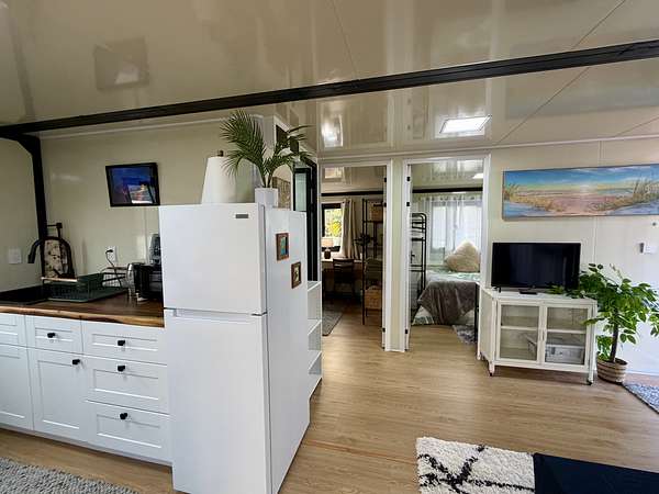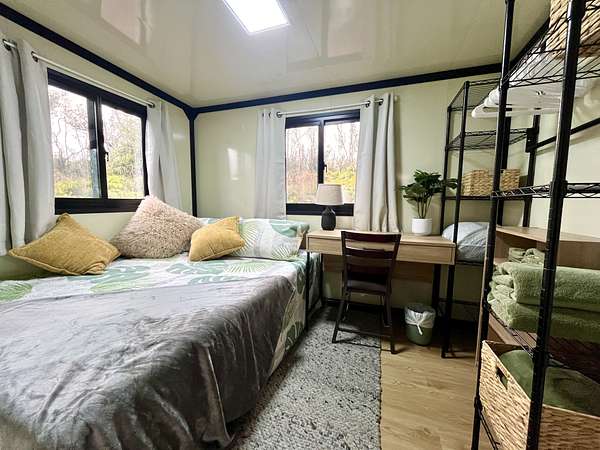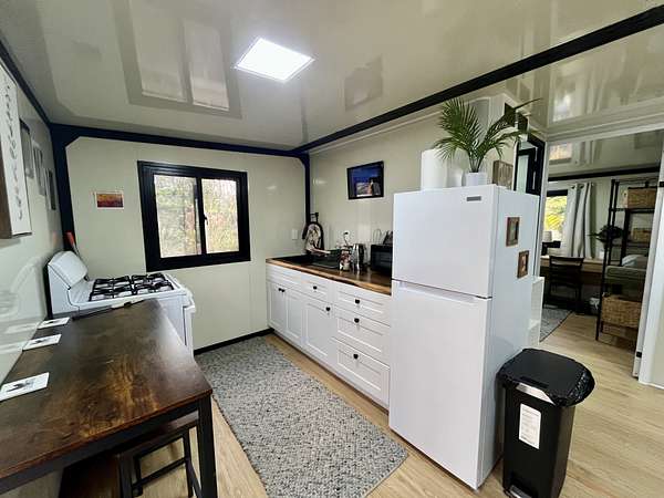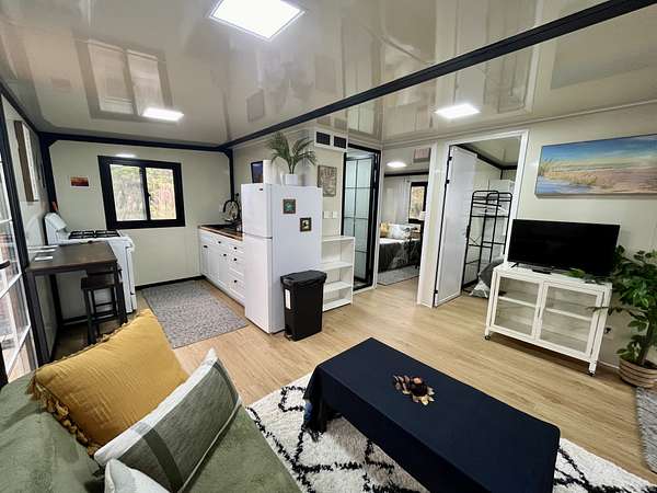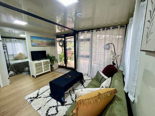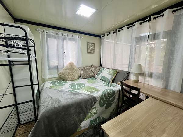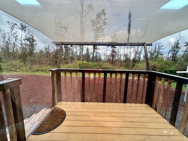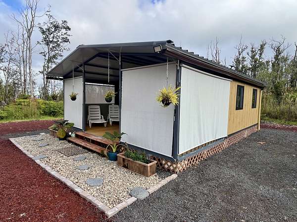 Discover your private sanctuary in the heart of Hawai'i's lush ohia rainforest. Tucked away on 3 gated acres in Fern Forest Vacation Estates, this turn-key 2-bedroom, 1-bath eco-cottage delivers modern comfort with fully sustainable, off-grid living across 400 thoughtfully designed interior square feet. Powered by an impressive EG4 8000-watt solar system and supported by a 4,000-gallon water catchment with UV filtration, this home offers true self-sufficiency in a peaceful, high-elevation setting. Step inside to find stylish, quality finishes throughout, including lifeproof vinyl flooring, a spa-like marble-tiled shower and Swedish composting toilet for a greener footprint, and all new appliances. Smart features like a WiFi-enabled digital entry lock add convenience and make remote management or guest use a breeze. Extend your living area on the covered front lanai, where you can enjoy misty mornings, the sounds of native birds, and the calming beauty of nature all around you. The WPC (wood-plastic composite) decking will extend the life of your covered deck, and pull down shades surrounding the porch offer protection from sun or wind when desired. Whether you're dreaming of a weekend retreat, a minimalist lifestyle, or a smart investment in Hawai'i's natural splendor, this affordable and eco-friendly cottage offers the perfect blend of modern living and off-grid independence. Sold furnished for a seemless turn key experience. For more info on the subdivision, please visit Container on property is not included in sale and will be removed prior to closing Approx lot dimensions 125x1045 Elev approx 2500 ft Lava zone 3, Flood zone X Please visit for info SSPP $2844 Fiber optic internet Available copy and paste ... Do not enter property Without appointment Video surveillance and alarm