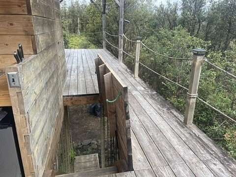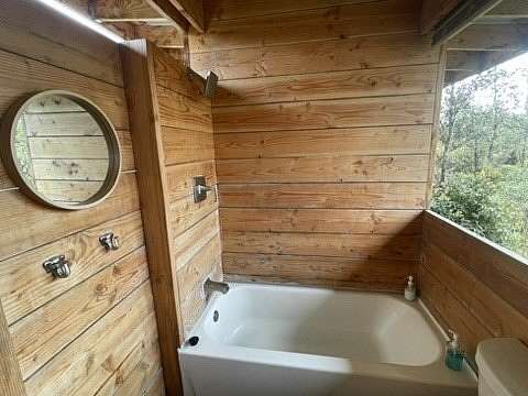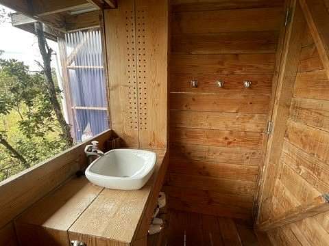Tropical Treehouse Retreat in the Rainforest. 2 Bedroom 1 Bathroom home is elevated off the ground into the Ohia trees. Very private location with no visible neighbors. Bathroom features a spa like indoor/outdoor tub. Chef's kitchen in the trees! Bedrooms are located at opposite ends of the structure giving privacy. Access the treehouse through a winding landscaped path through the rain forest. Two Covered lanais on the upper level and covered lower level add outdoor living space. From the treehouse follow another winding trail to the separate studio cabin, nestled in it's own private grove of Ohia. Enjoy the bird's song and exceptional star viewing. Completely off grid and self- sufficient with solar power 3x400w panels + 3 LiFePo4 Batteries, rain water catchment, and flushing vermi-composting toilet, a zero maintenance system. Property was mindfully cleared preserving the natural rainforest and many edible plantings interspersed including Avocado, Ulu (breadfruit), Citrus, Bananas and more. Two full acres off a paved road, 30 minutes to hiking and adventuring at Hawaii Volcano National Park and 35 minutes to beaches, shopping and dining in Hilo. The nearby town of Mountain View offers several dining options as well.