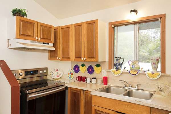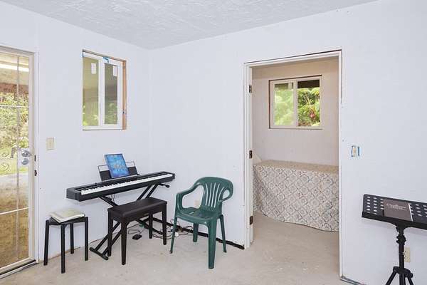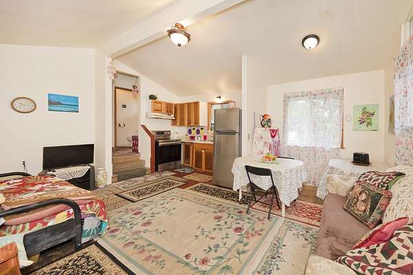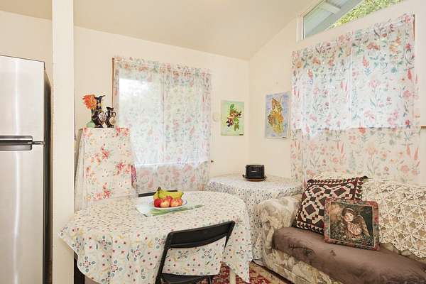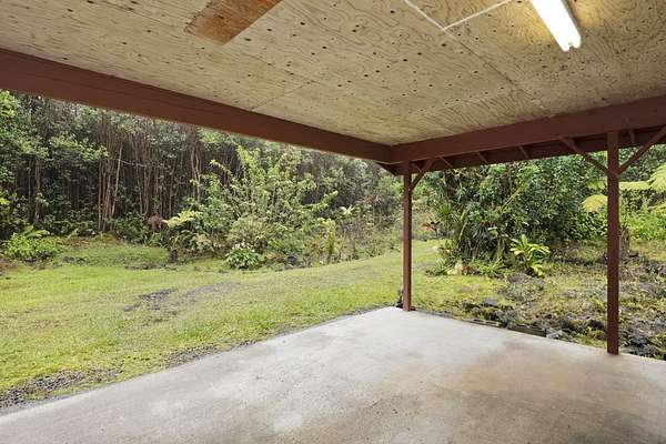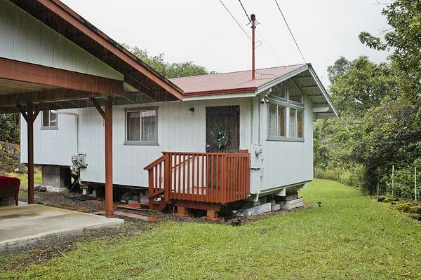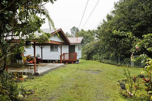 Currently accepting backup offers. Charming furnished, permitted 1-Bedroom 1-Bath detached single-family residence in beautiful Fern Acres, situated at the 1,400-foot elevation where cool breezes and lush greenery thrive. Located on 2 acres, this peaceful property features paved road access, Hawaiian Telcom internet and DIRECTV availability, a gated entry, and a detached carport. Here's your chance to downsize to 512 square feet of comfortable living while enjoying 280 square feet of versatile space behind the 360 square foot carport, ready for a workshop, hobby room, or extra storage. Embrace a simpler lifestyle in a tranquil setting. Enjoy beautiful tropical plantings-guava, lemon, mountain apple, puakinikini, hibiscus, ginger, anthurium, and a mango tree in the back. Approximately 1-acre has been cleared, providing a spacious, usable area for gardening, expansion, or outdoor living. Live here in this loving, private, and peaceful tiny "home sweet home" on Plumeria Street in Mountain View, Hawaii.