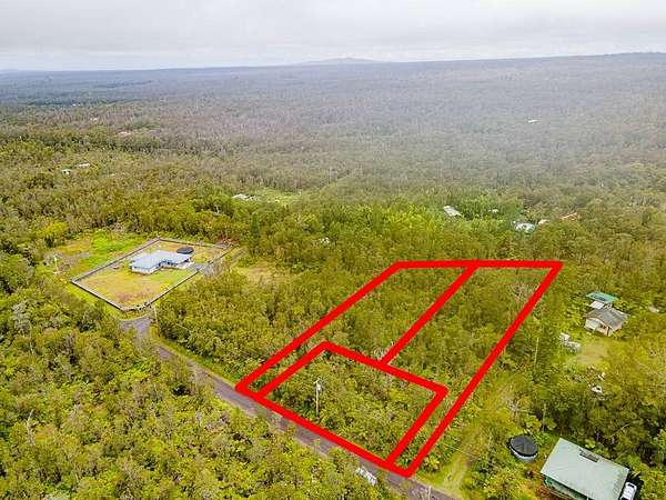 Build your dream home on this flag lot in Royal Hawaiian Estates that has already been staked. You can also buy the two adjacent lots to create a larger lot or build three homes on the three lots for a little housing compound (TMK 3-1-1-56-109, a 14,072 sq ft flag lot for $50,000; and TMK 3-1-1-56-111, a 10,200 sq ft front lot for $50,000). The possibilities are only limited by your imagination! Enjoy cooler climate, paved roads, access to overhead power, no CC&R's. Listen to birdsong as you take walks in the quiet neighborhood or explore numerous trails at nearby Volcano National Park. Volcano Village is a short drive away for restaurants, general stores, and gas. Go bowling or take in a movie at Kilauea Military Camp, attend special programs at Volcano National Park, develop your artistic side by taking classes at the Volcano Art Center, play a round of golf at Volcano Golf & Country Club, or go wine tasting at Volcano Winery. Punalu'u Beach is a 40-minute drive away and offers a beautiful expanse of high-quality black sand, along with picnic tables and amenities for a relaxing day. Hilo is a 50-minute drive away should you miss the hustle and bustle.