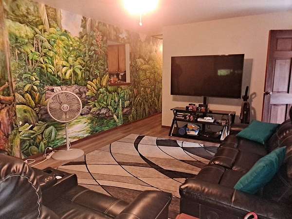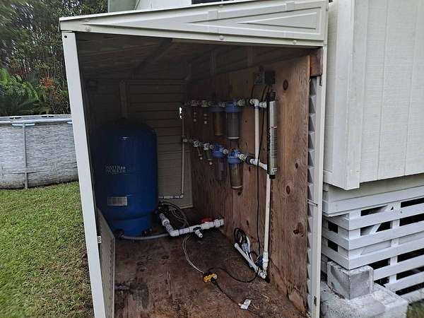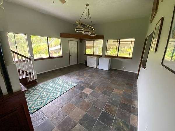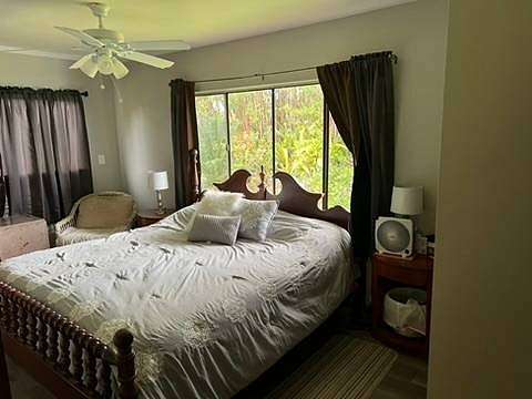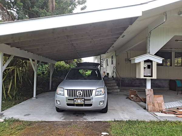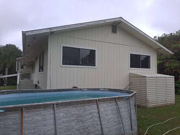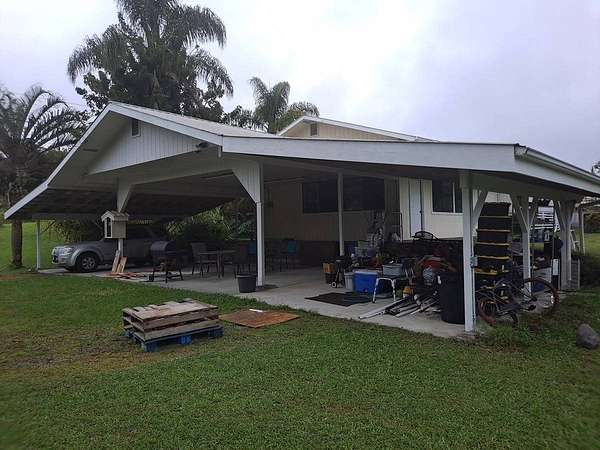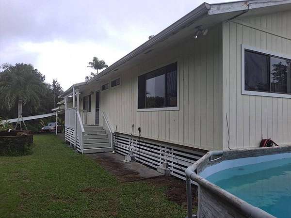 Spacious home with loads of special features.Everyone will enjoy this unique home on a unique lot. Plus carport parking for up to 4 vehicles and more space in the drive for large gatherings! Three bedrooms at one end of this refreshed home and a huge game room/multipurpose room with gorgeous slate tile flooring at the other end gives everyone room to spread out. Smartly designed storage space for your convenience and to keep the holiday decorations out of sight but easily reachable. The oversized lot will compel the gardener in you to plant a food forest. Harvest juicy oranges and other citrus and plant new trees of your choice. The lot has an abundance of space and potential. Fern Acres enjoys cooler weather and adequate rain and sun for year 'round growing. The circular gated driveway is private from the road and has a nice gate with keypad opener that is in need of repair, but has established power to it. A stone/concrete pond near the house is growing tilapia. Become more food independent! An above ground pool rounds out your oasis in Fern Acres. Two enclosed catchment tanks with UV filtration provide water for all your needs. Sold partially furnished. Inventory list available upon request. Recent upgrades include, but are not limited to: Freshly powerwashed New flooring throughout the main home New fixtures, fans and paint