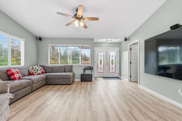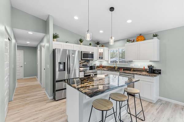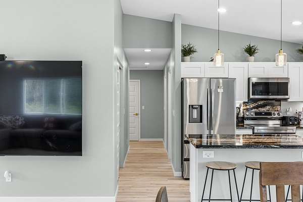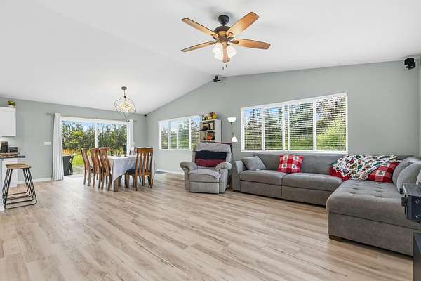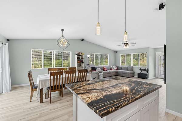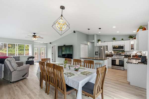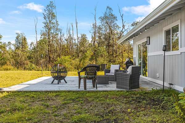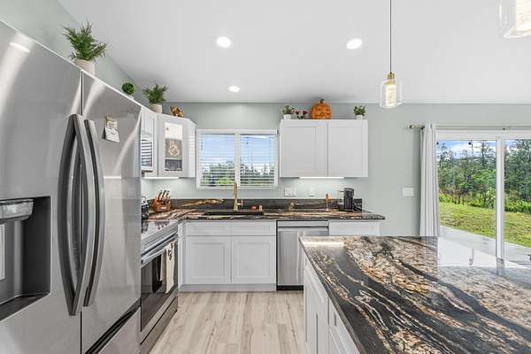Discover this beautifully crafted brand-new 2024 build. A beautifully designed 3-bedroom, 2-bath home offering 1,372 sq. ft. of modern comfort and thoughtful upgrades throughout. From the moment you enter the 400-ft private driveway, this property delivers the privacy, space, and quality buyers are looking for. Step inside to a sleek, modern interior featuring stainless steel Samsung appliances and natural quartzite countertops and backsplash, creating a stunning, durable, and high-end kitchen space. Enjoy high-speed living with CAT6 outlets in every room and the reliability of a 200-amp electrical service, perfect for today's work-from-home lifestyle. Every window is outfitted with custom blinds for added style, comfort, and energy efficiency. The home also includes a top-of-the-line whole-home water filtration system with UV purifier, providing clean, safe, high-quality water year-round. The open layout extends to a generous 20' x 20' lanai pad, creating the ideal space for entertaining, relaxing, or future outdoor enhancements. An exterior 10' x 3' locking storage area attached to the home provides secure space for tools, outdoor gear, and other essentials- excellent for island living. Situated at a desirable 1,500 ft elevation, this community offers cooler temperatures year-round, typically 65 degrees to 85 degrees , providing the perfect balance of island living and upcountry comfort. Enjoy the added convenience of community-maintained private paved roads, offering smooth access and a well-kept neighborhood feel. This move-in-ready home checks all the boxes for buyers seeking privacy, modern finishes, and long-term value. Don't miss this opportunity!