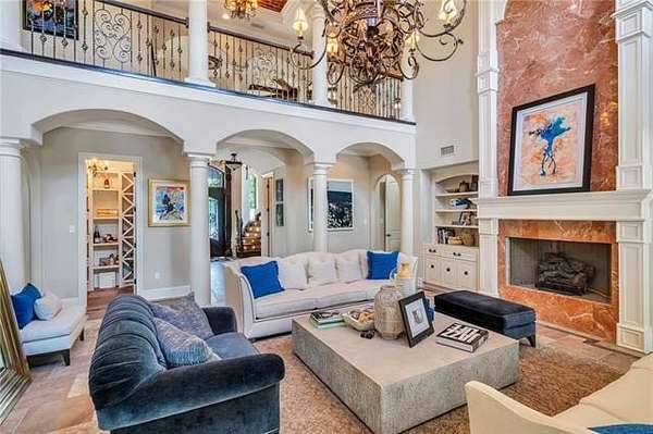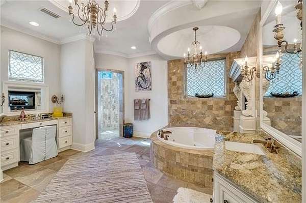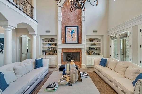 Step into the great room, where soaring high ceilings are adorned with elegant marble fireplace and expansive windows offer breathtaking views of the outdoor. The lavish primary suite is a sanctuary, complete with a private office, coffee bar, and cozy fireplace. The primary bath has large soaking tub ,dual vanities, spa-inspired rain shower, and custom closet with its own washer and dryer. A private downstair bedroom suite is nice for visitors or multi-generational living.