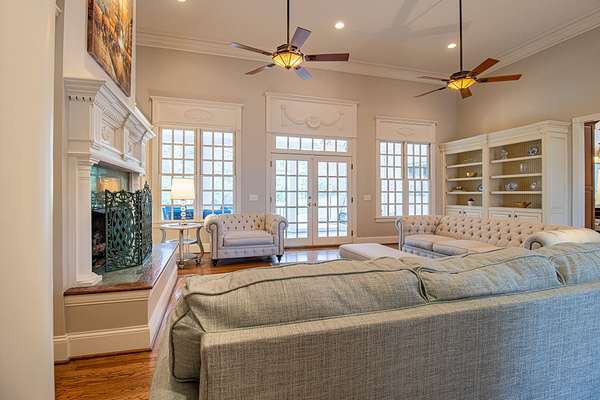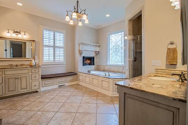 Retreat to the spa-inspired primary suite boasting a luxurious bath with cozy fireplace, heated tile floors, a huge walk-in closet with washer/dryer hookups, plus a 2nd walk in closet. Enjoy private access to a screened-in porch for your morning coffee or evening relaxation.
