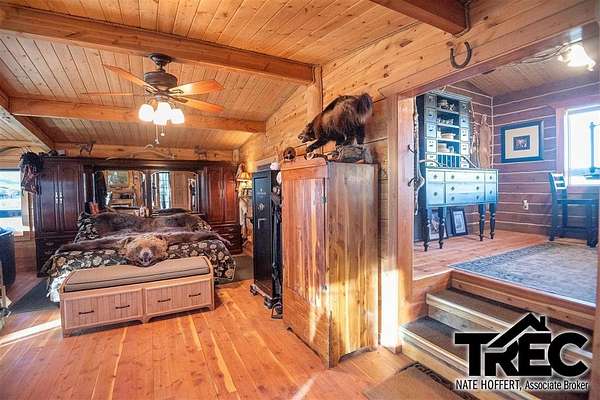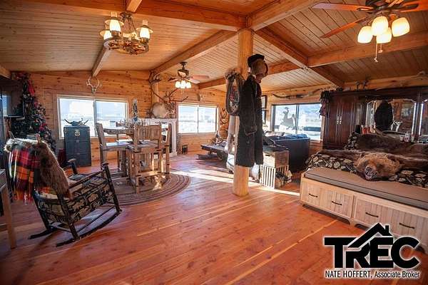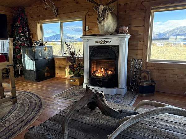 Welcome to this cozy, custom built, square-log cabin, situated on 5.11 acres at the foot of the Beartooth mountains, just minutes from seemingly endless National Forest and BLM lands, and only 75 miles from Yellowstone Park. The cabin features vaulted, heavy timber/tongue & groove pine ceilings, custom saw-cut pine flooring, custom log work, gas fireplace, and gas heating stove that are fed by 2 buried/owned 1000 gal. propane tanks. Easy to winterize, and having automatic steel shutters on the windows/doors, would make this a great vacation, hunting, rental cabin, or just a cozy home away from it all. Additional features include a 42'x80' shop slab, a 40' steel storage container, and the private water well that provides the property with excellent water. The cabin comes mostly furnished and decorated. Listing agent can provide a list of items that are excluded from the sale. Motivated seller, willing to entertain reasonable offers.