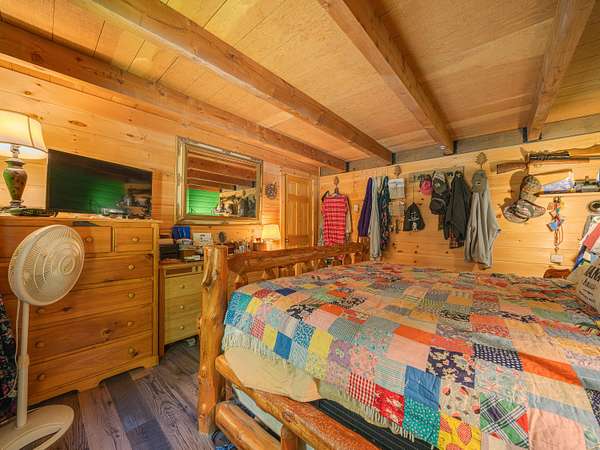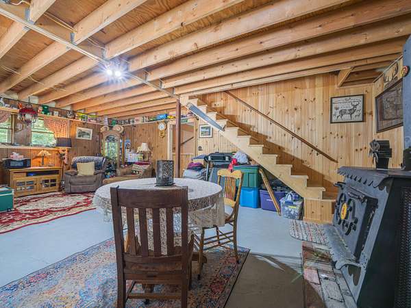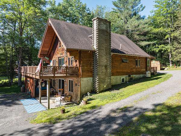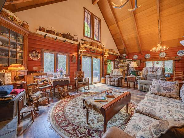 This inviting 3-bedroom, 2-bath log cabin sits on a generous 1.6-acre lot, offering space, privacy, and endless opportunities to enjoy the outdoors. Whether you're stargazing from the wraparound porch or gardening beneath the tall trees, this property is a nature-lover's dream. The Cabin boasts vaulted ceilings and rustic timber beams create cozy ambiance. The open kitchen/dining offers efficiency as well as plenty of room for family and friends to gather. The large year round porch has plenty of windows for natural light and a place to watch the native birds and other wildlife in inclement weather. The finished basement features a family room, office, laundry room, and extensive storage space. Outside Features: *Large yard surrounded by mature woods, perfect for fire pits, trails, or even a future garage *Quiet neighborhood just outside the village limits, with low traffic and tranquil vibes *Patio with a hot tub below the deck *Easy access to local lakes, mountain trails, and Tupper Lake's unique attractions Whether you want peaceful seclusion or space for pets, play, and projects, this property delivers!