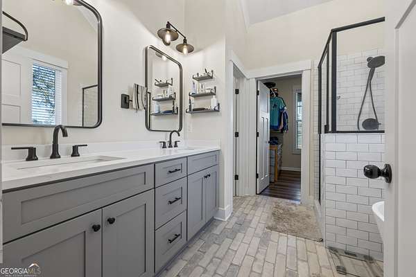 - Double Vanity, High Ceilings, Master On Main Level, Tile Bath, Tray Ceiling(s), Vaulted Ceiling(s), Walk-In Closet(s)