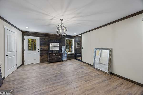 Privately situated on 2.05 acres with no HOA, this 4 bedroom, 2.5 bath home offers mountain views and a long concrete driveway leading to a beautifully maintained residence. Luxury vinyl plank flooring runs throughout the main living areas, complemented by quartz countertops and an open, functional layout designed for everyday living and entertaining. The main level owner's suite features a spacious walk in closet and peaceful views of the surrounding property. The kitchen flows seamlessly into the keeping room and breakfast area, highlighted by two wood burning fireplaces with gas starters. The finished basement expands the living space with a dedicated media room and workout area, along with a workshop or mechanical space with double door exterior access. A stubbed bathroom provides opportunity for future expansion. Outdoor features include a rear deck overlooking wooded privacy, fenced backyard, irrigation system, seller added outbuilding, and cleared land ideal for a future garage, barn, or garden. Enjoy private mountain living with convenient access to the shops, dining, wineries, and outdoor recreation of Ellijay, Jasper, and Blue Ridge.