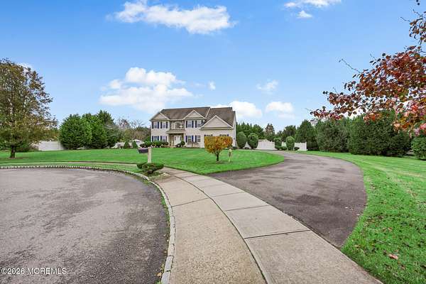 Welcome to this 5-bedroom, 3.5-bath Colonial set on a private 1.5-acre cul-de-sac lot. The home includes a spacious family room with a wood burning fireplace alongside a kitchen with granite countertops center island and stainless steel appliances. The primary suite offers generous space and a walk-in closet, while the main level includes an in-law or second primary suite with a full bath. A partially finished basement provides additional living space. The backyard provides a private entertaining space with vinyl fencing paver patio and irrigation well with sprinkler system, plus a large heated saltwater pool framed by a sun deck cabana and refined stamped concrete. An attached two-car garage completes the home.