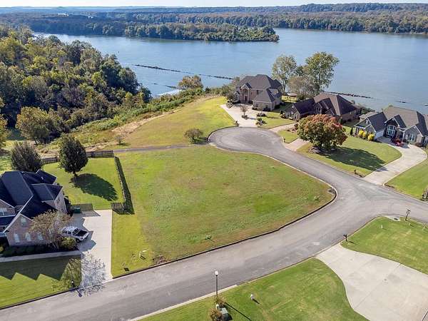 Last available waterfront lot at Ridge Pointe, a gated subdivision of newer custom homes. Unobstructed, panoramic Sunset Views toward Seven Mile Island wildlife sanctuary. Watch Bald Eagles catching fish, yet only 3 minutes to downtown Sheffield, & 10 minutes to downtown Florence & Tuscumbia. Approximately 3 miles down the Tennessee River from Florence Harbor on Pickwick Lake on So side of river.. The gently sloping lot comes with a set of custom home plans done by High Cotton Homes. Plans also comes with Topography & survey maps. The awesome location is in a cul-de-sac. 100 ft water front. The Ridge Pointe subdivision is at the south end of Riverfront Park, where there are public playground, walking trail, boat launch, picnic venues & parking. See documents section for more details on topo map and home plan renderings. Per my observations (as well as other local Realtors), a similar lot on the Florence side of the river is usually priced $100k-$200k more! Realtor owned.