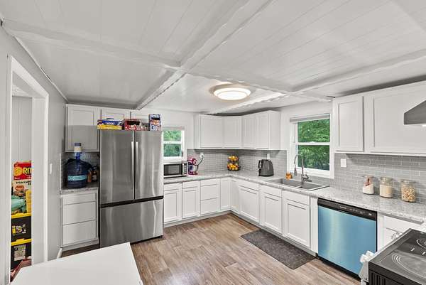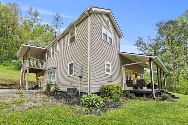Discover country living at its finest with this beautifully renovated 4-bedroom, 2-bath home with a dedicated office, set on 3 peaceful acres in McKee, KY. This thoughtfully updated home features a first-floor primary bedroom for added convenience and a fully modernized interior. Upgrades include new flooring and carpet throughout, fresh paint, updated cabinets and appliances, brand-new windows, new electrical, and two newly installed HVAC systems for optimal climate control on both levels. A brand-new roof and French drains around the home add durability and peace of mind. Outside, enjoy the covered front porch, second-floor deck, and side patio, plus two versatile outbuildings for storage or hobbies. This property blends charm, function, and modern comfort in a tranquil rural setting.