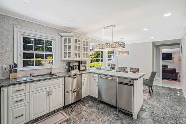 - Eat-In Kitchen, Entrance Foyer, First Floor Bedroom, First Floor Full Bath, Formal Dining, Granite Counters, His and Hers Closets, In-Law Floorplan, Marble Counters, Primary Bathroom, Recessed Lighting, Washer/Dryer Hookup