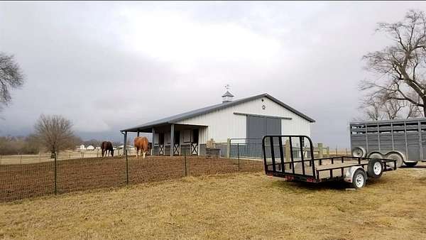 Don't miss this exquisite Equestrian property set in south Douglas County on 20 acres. Custom built in 2016 this 2,646 sq ft Prairie Modern home features 3 bedrooms, 2.5 baths and 900 sq ft of partially finished, daylight basement. Stained concrete floors, double pane Pella windows, and custom wood doors add warmth along with the two zoned geothermal heating and cooling feature plus a European wood stove. The master bedroom has a custom California walk-in closet, and en-suite bath with soaking tub, rainfall shower and floating custom cabinetry. The Kitchen features a 3'x8' Zebrawood Island, a large walk-in pantry and high-end coordinating granite countertops. Laundry room off the kitchen with sink, solid surface counter, storage closet and dog shower. There are two covered outdoor living spaces with carsiding ceilings and multiple electrical outlets. The property is fenced and cross-fenced for horses. Morton barn (36'x36' plus 10' overhang) has 4 custom stalls, large sliding doors at both ends, electricity and water. There are 3 fenced paddocks, a round pen and 13 fenced total acres divided into 4 rotational pastures. 9.5 acres are seeded with Brome/Prairie grass and are harvested yearly for stock feeding. An equipment shed on property stores farming equipment and hay. Come and see this exceptional, turnkey property that will bring your visions of equestrian living to life.