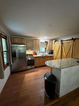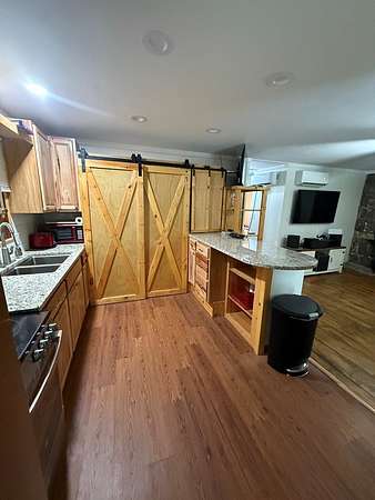- Breakfast Bar, Ceiling Fan(s), Kitchen/FR Combo, Main Level Living, New Kitchen, Pantry, Primary On Main Level