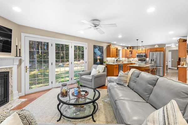 Perfectly positioned on a private 2.61-acre lot in an established neighborhood, 11 Fox Run Road is a spacious and beautifully maintained Colonial-style home offering 4 bedrooms, 4 bathrooms, over 3,100 square feet of living space, and exceptional privacy. The first floor features a welcoming layout with a large mudroom and full bath, a well-appointed kitchen with center island, and a living room with a gas fireplace overlooking the wooded backyard. A formal dining room and dedicated office provide versatility for both work and entertaining. Upstairs, two separate staircases lead to a thoughtfully designed layout that includes two primary suites- each with its own en-suite bath along with two additional bedrooms, a shared bath, and second-floor laundry. The partial daylight lower level offers excellent potential for future finished space. Step out back and experience nature right at your doorstep. From the backyard, access one of Southern Maine's most extensive trail networks connecting Blackstrap Hill Preserve, North Falmouth Community Forest, and the East Windham Conservation Area with over 30 miles of trails for hiking, biking, snowshoeing, and cross-country skiing. Recent improvements include a new paved driveway, new roof, and updated systems leaving nothing to do but move in and enjoy. Close to interstate 95 and multiple shopping districts in Falmouth and Windham, this location does not compromise convenience or lifestyle.