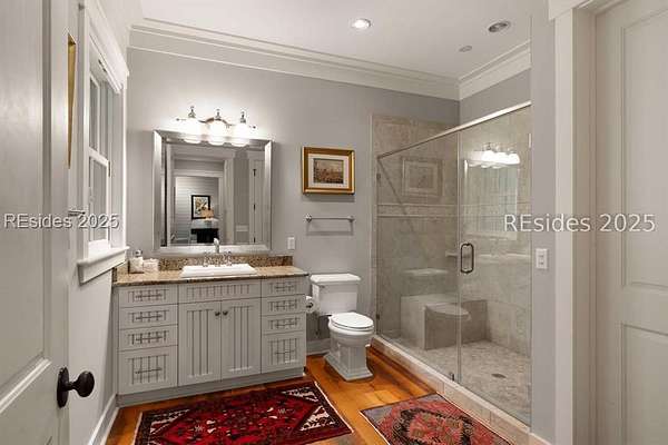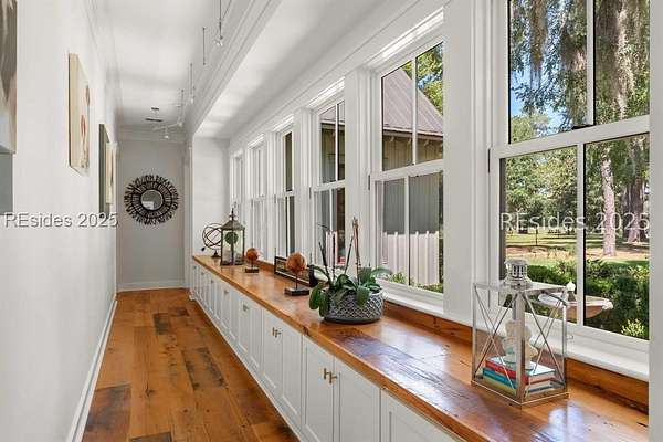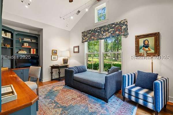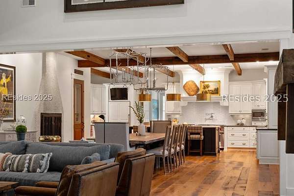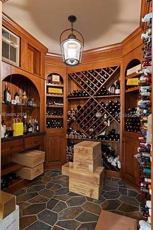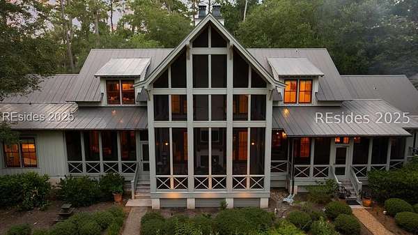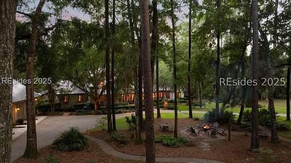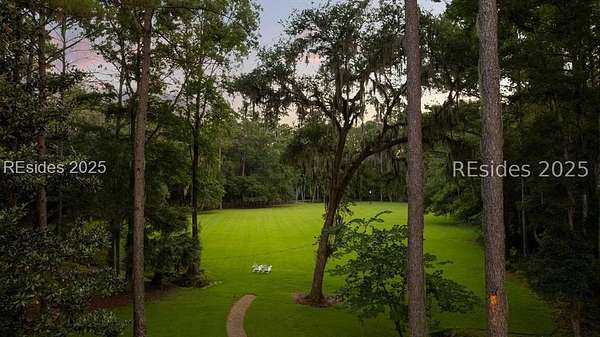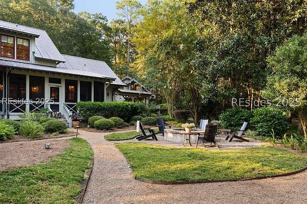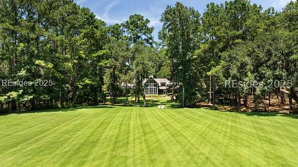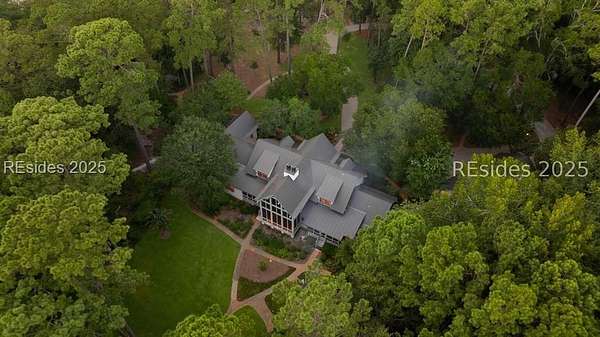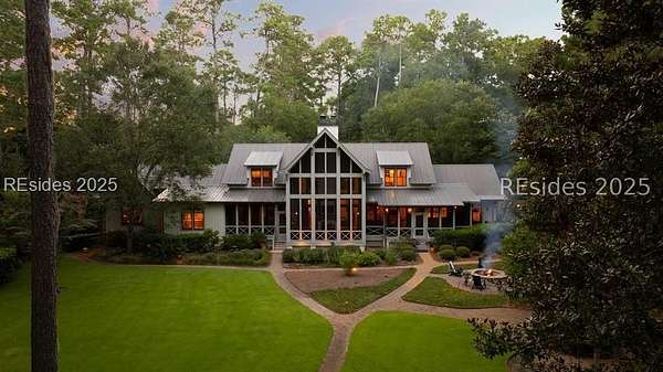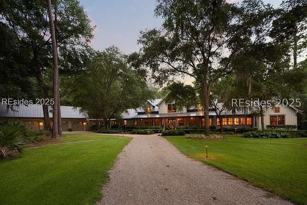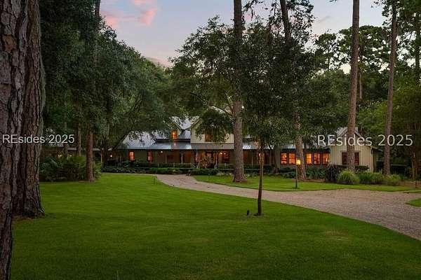 Ringed by the quiet serenity of untouched maritime forest, 11 Headwaters Road is a 7,311 square foot, fully furnished, seven-bedroom, eight-and-a-half bath family compound consisting of a main house, guest house and carriage house set on more than 24 acres in the blissfully secluded Headwaters community of Palmetto Bluff. Throughout the estate grounds you'll find quiet waterside beauty, deep enchanting forests, lushly landscaped gardens, outdoor living, a private covered dock, and its heart, a family home for generations. The craftsmanship of Johnson-Dulaney builders paired with architectural brilliance from Wayne Windham to create grand sweeping spaces that give everyone room to come together, dotted with quiet retreats for soaking in the Lowcountry's grandeur. In the main house, a soaring two-story great room anchors the home with reclaimed pine floors running toward a dramatic tabby fireplace that stretches to exposed beams. These beams carry into the airy formal dining and down to the open kitchen. Centered on a broad quartz center island, its six-burner gas range and plentiful counterspace and nearby wine cellar allow for even the largest family dinners. The main houses second floor also houses a bedroom as well as a full guest suite flanking an elevated sitting room, while the first floor is given over to the sprawling primary suite. A long gallery hall, which terminates in a pair of spacious offices with private baths, also leads to this blissful oasis. Enjoying private access to the screened patio, the primary suite indulges with gorgeous views of the property and amenities for two dual walk-in closets, and his-and-hers en suite baths. Such space is necessary in a property like this, where guests from the main house, guest house and carriage house will come together. Situated above the sprawling garage, with room for four cars, the carriage house offers full apartment living with expansive living room, kitchen and full suite with private bath. Anchored by a spacious living room with kitchenette, the guest house offers three bedrooms with spacious closets, two of which share a jack-and-jill bathroom with the third being a full suite. A private enclave of ten family compounds overlooking the beautiful May River, the gated Headwaters community is the ultimate location for privacy and seclusion.