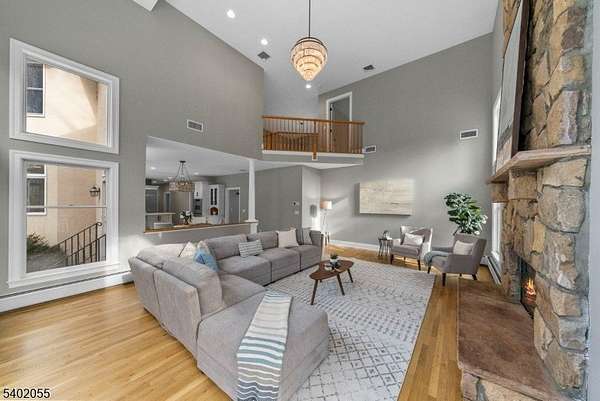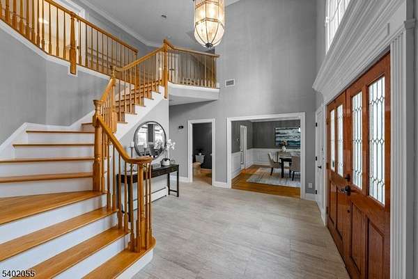 Welcome to this impressive 5 bedroom center hall colonial with 4 full and 2 half baths, plus a three car garage. Freshly painted and featuring hardwood floors throughout the first and second levels, this home offers a bright and polished feel from the moment you enter. A 2 story foyer welcomes you with a palladium window and chandelier with automatic lift. Formal living and dining rooms showcase custom moldings and hardwood floors. The spacious great room features soaring ceilings, a wood burning fireplace, and a full wall of windows with French doors leading to the backyard. The gourmet kitchen includes a center island, stainless steel appliances, a butler's pantry, and an adjoining breakfast area. The first floor also offers a bedroom/home office with an ensuite full bath, a laundry room, and a powder room. The 2nd level offers a spacious primary suite with a gas fireplace, sitting room, two walk-in closets, and a spa-like bath with a freestanding soaking tub and walk-in shower. Three additional generously sized bedrooms are also located on this level, including one with an ensuite bath, along with an additional full hall bath. The finished basement provides flexible recreation space, a powder room, and ample storage. Built in 2001, this architecturally striking home features a sprawling backyard that provides exceptional space, privacy, and room to enjoy the outdoors. This home is located on a beautiful street with close proximity to hiking trails, shops, and recreation.