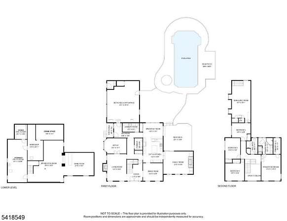 - Basement, Bathroom x 4, Bedroom x 4, Dining Room, Family Room, Game Room, Kitchen, Living Room, Office