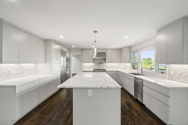 - Dishwasher, Disposal, Dryer, Gas Range, Microwave, Range Hood, Refrigerator, Wall Oven, Washer, Wine Chiller