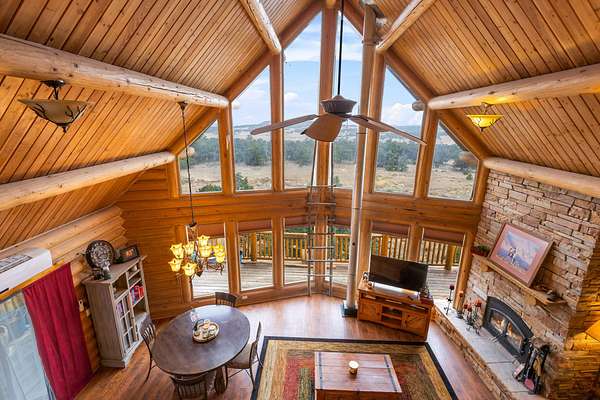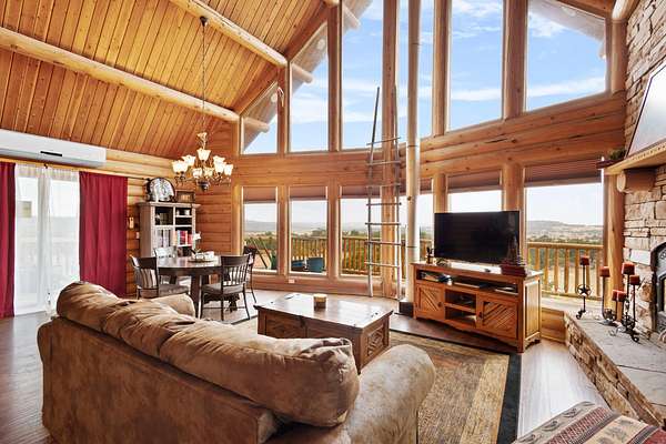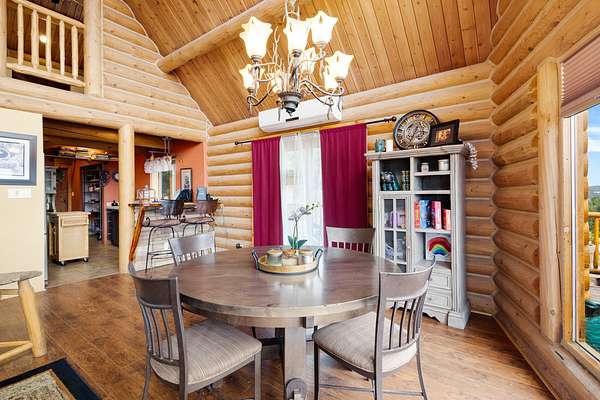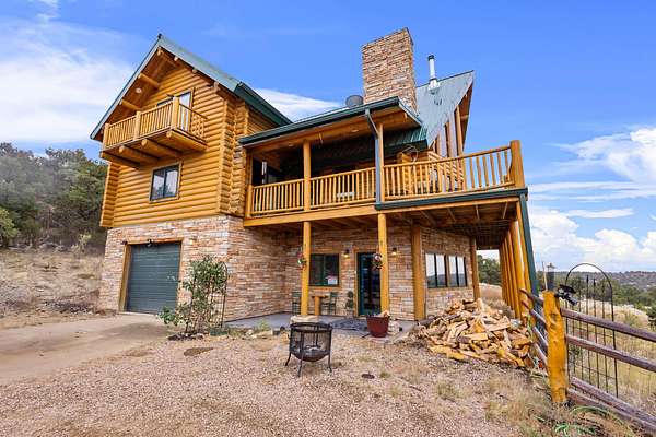 Welcome to your private Montana Log Cabin retreat! Nestled on 20 scenic acres backing up to BLM land, this rustic log cabin offers true seclusion and breathtaking views of New Mexico's natural beauty. The cabin features a durable metal roof, a spacious garage, and high-end touches like granite countertops in the kitchen. The beautiful fireplace and extraordinary views will help you recharge and remember the simple things in life. Currently operating as a successful Airbnb, this property comes fully furnished, with all household items included in the sale--ready for you or your guests to move in. Whether you're looking for a serene getaway or an investment property, this beautiful log cabin combines rustic charm with modern amenities in an unbeatable location.