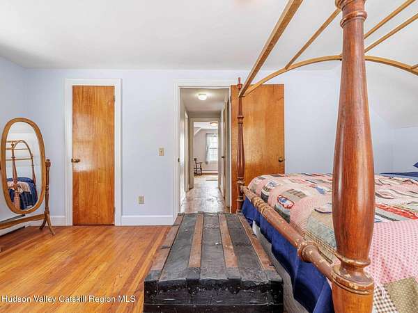 In the foothills of the Shawangunk Mountains sits a spacious Cape with hardwood floors, a large yard, and ample parking. Private and charming, the home is also in the New Paltz School District. The first floor boasts mountain views, a large eat-in kitchen, and a generous sized bedroom and full bathroom. Upstairs, the home offers two more large bedrooms and a second full bath. Soak in the quietude in the last home on this dead end road from the deck with views of the ridge or on the patio overlooking the private backyard - perfect for your furry friends! The basement hosts in-home laundry and additional storage. The home is being offered partially furnished for ease of moving in with additional or less furniture available upon request. The owner covers electricity, snow removal, and landscaping. Tenant is responsible for heat (oil), trash, and Wi-Fi. Nothing to do but move in and enjoy all that New Paltz and the Hudson Valley has to offer during peak cozy season! All tenants must have a minimum 650 credit score to apply. Available immediately for a lease now until the end of June. Pet friendly!