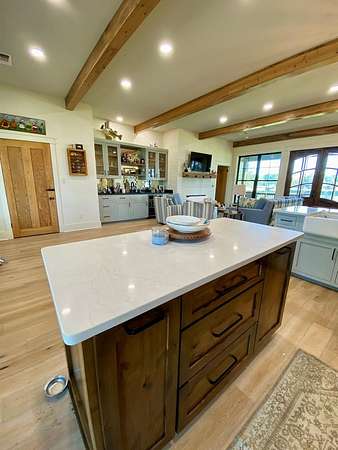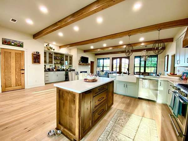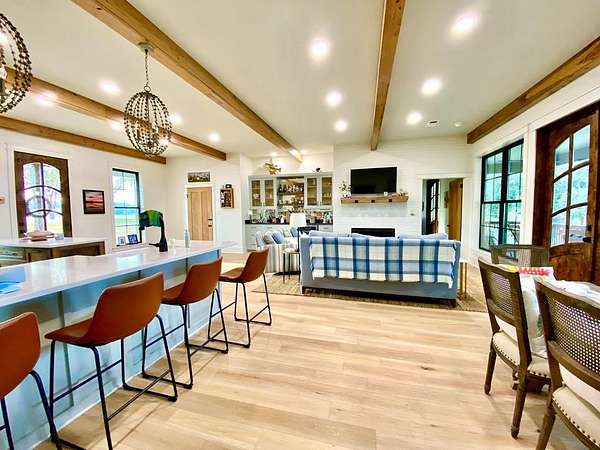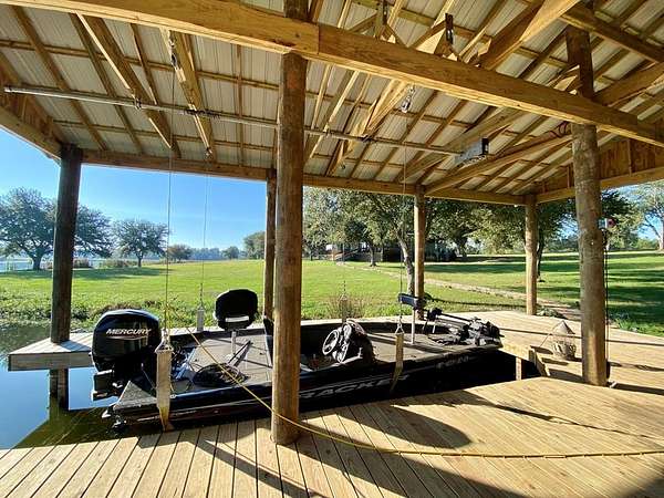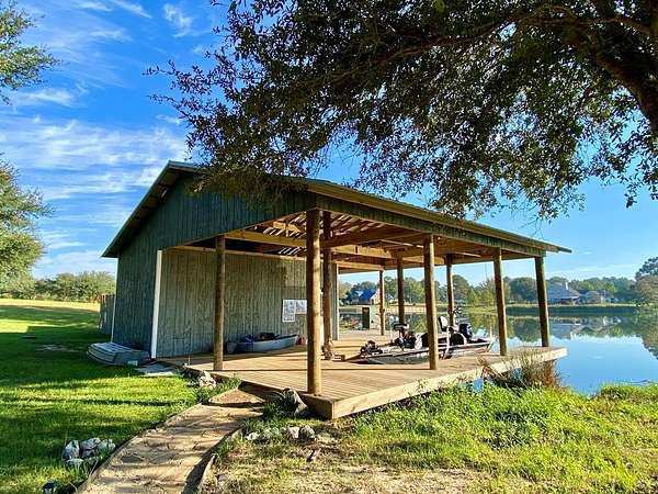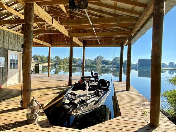 Est $2,739/moCustom built home fronting on a 135-acre lake. This home has many upgrades and is great for entertaining. The floor plan is open with a wet bar, kitchen island, high end stainless appliances, exposed wood ceiling beams and much more. There are 2 ea. tankless HWH's, an outdoor kitchen complete with icemaker, mini frig., built in grill and island/bar top that is all under a covered deck. The deck spans 67 ft. along the rear of the home facing a breathtaking view of the lake. The boathouse is approximately 24x24 with a storage area, deck and boat slip. There is also an automatic fish feeder that will feed the trophy bass.