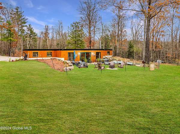 Private Retreat on 64.6 Acres! This oasis offers unparalleled privacy and tranquility. Fully furnished and thoughtfully designed, imagine the current home becoming the first floor of a grand Timber Frame chalet expansion! 2,200 sq ft to start includes mud room, large kitchen, three bedrooms, and great room with incredible views and Vermont Castings wood stove. Many furnished amenities already including sauna, hot tub, pool and high-speed internet, providing the perfect blend of modern convenience and rustic charm. Should you choose to grow up, this can become an additional family suite -- imagine this first floor as an in-law unit while you live above! Presently operating as very successful Airbnb. Welcome to your secluded, peaceful, personal retreat! Welcome to Crown Point!