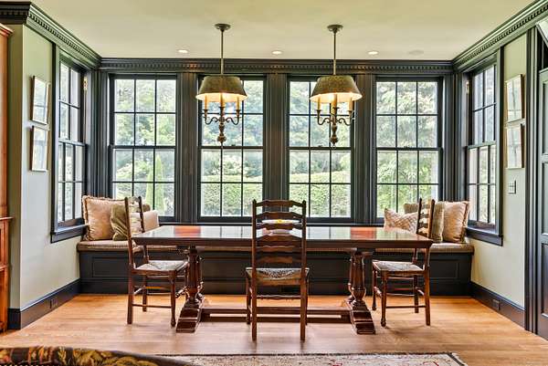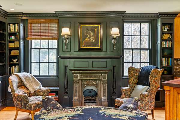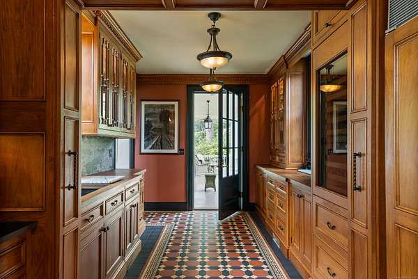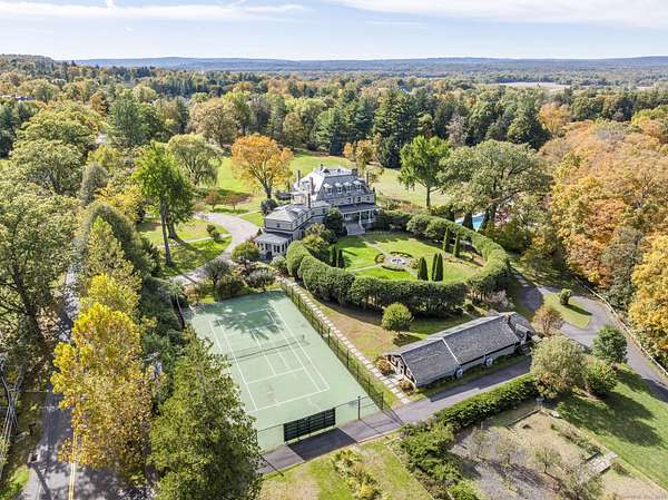 Tucked away on over 4.5 private acres off Historic Mountain Spring Road this Georgian inspired estate is an extraordinary example of American architectural heritage. It encompasses over 11,000 square feet of refined living space, offering 8 bedrooms, 7 full baths, and 3 half baths. A majestic Great Hall greets visitors with soaring ceilings and elegant millwork. The residence boasts formal entertaining spaces including a light-filled great room, distinguished library, and sophisticated music room. Luxurious interior details such as custom Butternut cabinetry, quarter-sawn oak built-ins, and handcrafted burl wood accents elevate the ambiance. The property's lavish amenities extend through a fully-equipped Irish pub, wine cellar, billiards room, media lounge, and fitness suite. Outdoors, a classical European-style pool pavilion, tennis court, greenhouse/studio, and guest cottage enhance the meticulously landscaped grounds, creating an idyllic retreat amidst specimen trees and serene views. See below for Historic details, The listing includes both 11 and 21 Mountain Spring Rd (Guest Cottage) total of 2 parcels 4.92 Acres. The 2 bedroom guest cottage adds an additional 1,482 sq. ft. of living space to the compound.