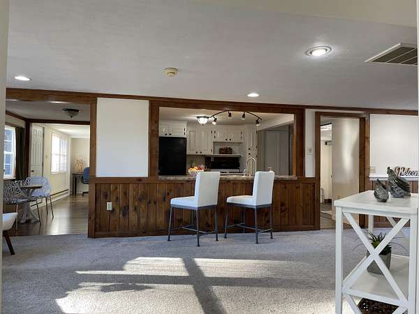 Set on a generous & open 1.67-acre level lot, this expansive home offers exceptional space for everyday living & entertaining. The open, level grounds are complemented by a partially wooded backdrop, creating a peaceful setting with room to roam, & a dedicated horseshoe pit for added fun. The front porch is perfect for watching the world go by. The main floor is designed for complete one-level living and features new carpeting in the bedrooms, fresh paint & a bright & inviting sunroom, featuring a beautifully designed brick paver patio just outside the door, where gatherings are a highlight. There is a large, exterior accessed climate-controlled storage room ideal for seasonal items or hobby use. Upstairs offers unique and versatile living with its own private entrance and deck, perfect for extended family or guests. With two kitchens and two laundry areas, the home provides outstanding convenience and functionality. There is central AC on the main level & a mini-split system upstairs. Additional features include a garage/shed with a dedicated workspace and heat, a separate smaller shed for extra storage, & ample outdoor space to enjoy the serene surroundings. This property seamlessly blends indoor comfort with outdoor enjoyment, offering endless possibilities for living, entertaining, playing and creating lasting memories. ALL OFFERS TO BE SUBMITTED BY 4:00 PM, WEDS, 12/31/25.
