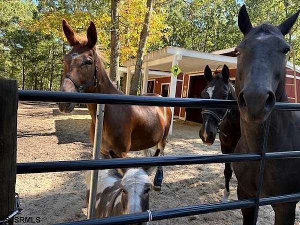 Welcome to this custom-built Colonial nestled in a hidden gem of Egg Harbor Township, offering the perfect blend of privacy, functionality, and lifestyle. Situated on 2.73 sprawling acres and backing directly to private parkland with scenic horse trails, this exceptional property is a rare find for nature lovers, hobbyists, and equestrian enthusiasts alike. This 4-bedroom, 2.5-bath home offers approximately 2,400+ square feet of well-designed living space. The first floor features hardwood flooring throughout, while the upstairs bedrooms offer brand-new carpeting. The thoughtfully remodeled kitchen is designed for both functionality and organization, showcasing custom wood and glass cabinetry, a pantry, granite countertops, and a full appliance package including a refrigerator, gas cooktop, built-ins, convection oven, and warming drawer. The inviting family room features a vented gas log fireplace, while the sunroom offers a cozy corner wood-burning stove—perfect for year-round enjoyment. The primary suite has been recently remodeled and includes a spacious walk-in subway-tiled shower. A convenient upstairs laundry area is located in the hall bath with a stackable front-load washer and dryer. Step outside to your private backyard oasis featuring a fiberglass, saltwater, heated in-ground pool, pool gazebo, fire pit, grill area, and an expansive weather-resistant deck with a custom-built awning—ideal for entertaining. For hobbyists and animal lovers, this property is fully equipped with a custom greenhouse, fenced vegetable garden, equipment shed, chicken coop with run, and more. The newly built (2024) horse pasture is complete with four-board Pine Oak treated fencing, six access gates, run-in sheds with tack rooms, a hay house, and a round pen. Additional features include: Attached garage & full basement with Bilco doors Decorative front door, custom trim, crown molding throughout Two sliding doors with built-in blinds (dining room & sunroom) Five skylights with built-in pleated shades Window treatments throughout including Roman shades & wood blinds Ceiling fans in all bedrooms & sunroom Recessed lighting throughout Beautifully landscaped grounds with sprinkler system & garden lighting Gravel driveway extending to horse pasture access Zoned agricultural, allowing for horses, this one-of-a-kind property offers the best of both worlds—peaceful country living with close proximity to parks, schools, beaches, golf courses, and shopping. A truly special home—must be seen to fully appreciate all it has to offer. Seller’s detailed notes and additional features are available in the MLS.
