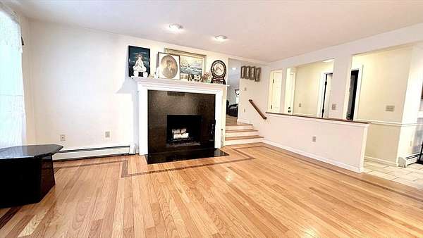 Spacious and beautifully maintained Colonial featuring an open layout, gleaming hardwood floors, and abundant natural light throughout. The inviting living room showcases a striking fireplace and custom inlaid hardwood flooring that creates a warm focal point. An expansive family room with vaulted ceilings provides exceptional space for relaxing or entertaining guests. The updated kitchen features granite countertops, stainless steel appliances, ample cabinetry, and a large center island with direct access to a deck overlooking a private wooded setting. Multiple living areas offer flexibility for a home office, playroom, or additional entertaining space. Generous room sizes, recessed lighting, and thoughtful design enhance comfort and functionality throughout the home. Conveniently located near shopping, restaurants, parks, and commuter routes while still offering a peaceful residential setting. A wonderful opportunity to enjoy space, comfort, and convenience in one beautiful home.