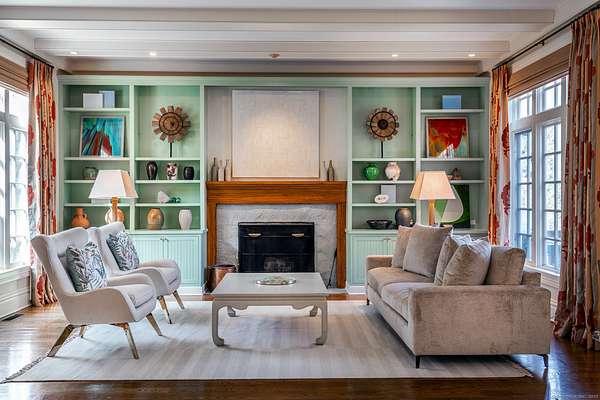 A private gated road leads to this elegant shingle-style estate on 20+ secluded acres in the beautiful Litchfield Hills with spectacular views that go on for miles. This property includes a four bedroom, five and a half bath main residence, in ground heated Gunite pool, tennis court, one-bedroom caretaker's apartment over a 3-bay garage, two bedroom guest apartment and greenhouse. This compound offers an intriguing mix of elegant sophistication and quiet country road living. Highlighted by judges paneling, the large two-story main foyer is breathtaking. An evening soiree for a large gathering of guests is easily achieved in the public rooms. Both rooms offer a touch of grandeur with extra tall ceilings, tall windows and exquisite detailed moldings. The formal dining room is generous in size with tall windows. The home also offers an array of comfortable spaces for intimate gatherings. The delightful and sunny great room includes the updated kitchen with dining, sitting area with fireplace bordered by floor to ceiling bookshelves and French door that leads to the deck overlooking the magnificent view. There is a family room with fireplace, rec room and full bath in the walk-out lower level. The main floor primary suite is extra special with a fireplace, French doors to brick terrace, and full bath with sauna. The three additional bedrooms, all with full baths, are nicely sized. Special in every way and just 90 minutes from NYC.